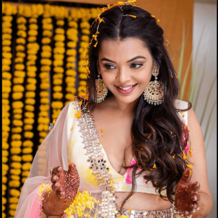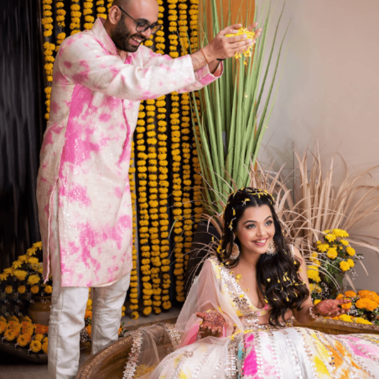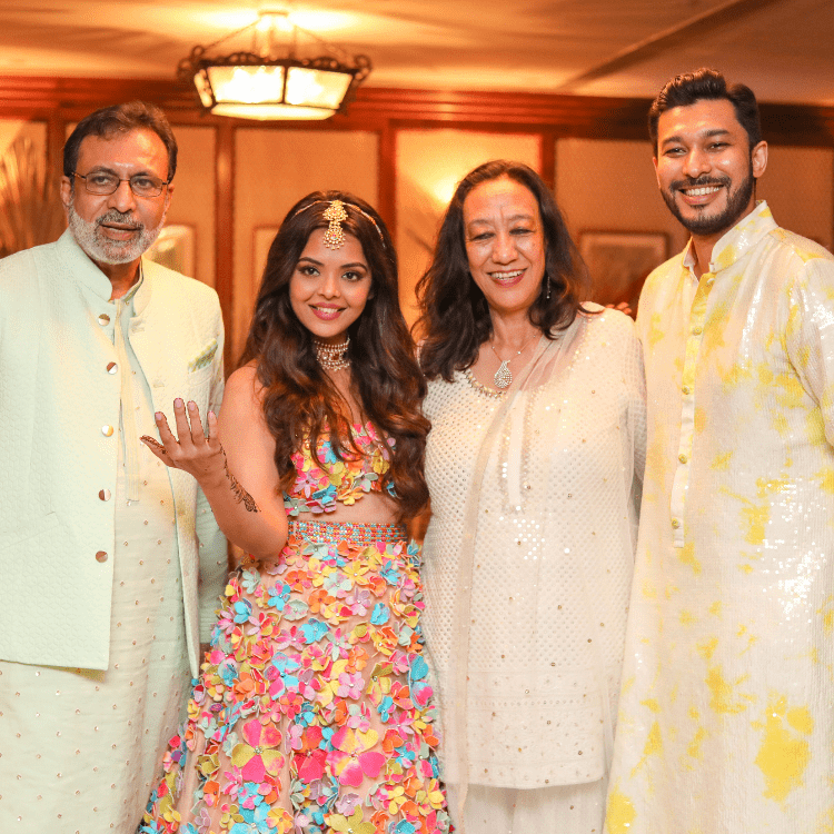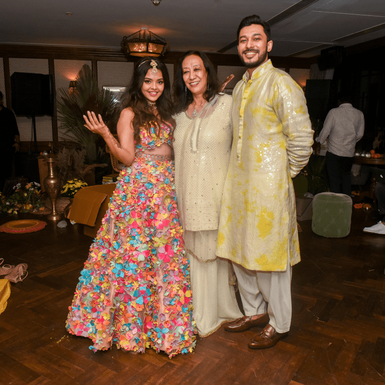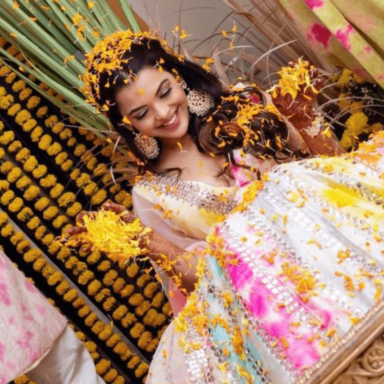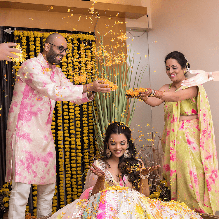 The Haldi was a home affair, the bride wanted the Haldi to be extremely private and in the house she had grown up. She was showered with tonnes of genda phool and a whole lot of Blessings by her chosen few.