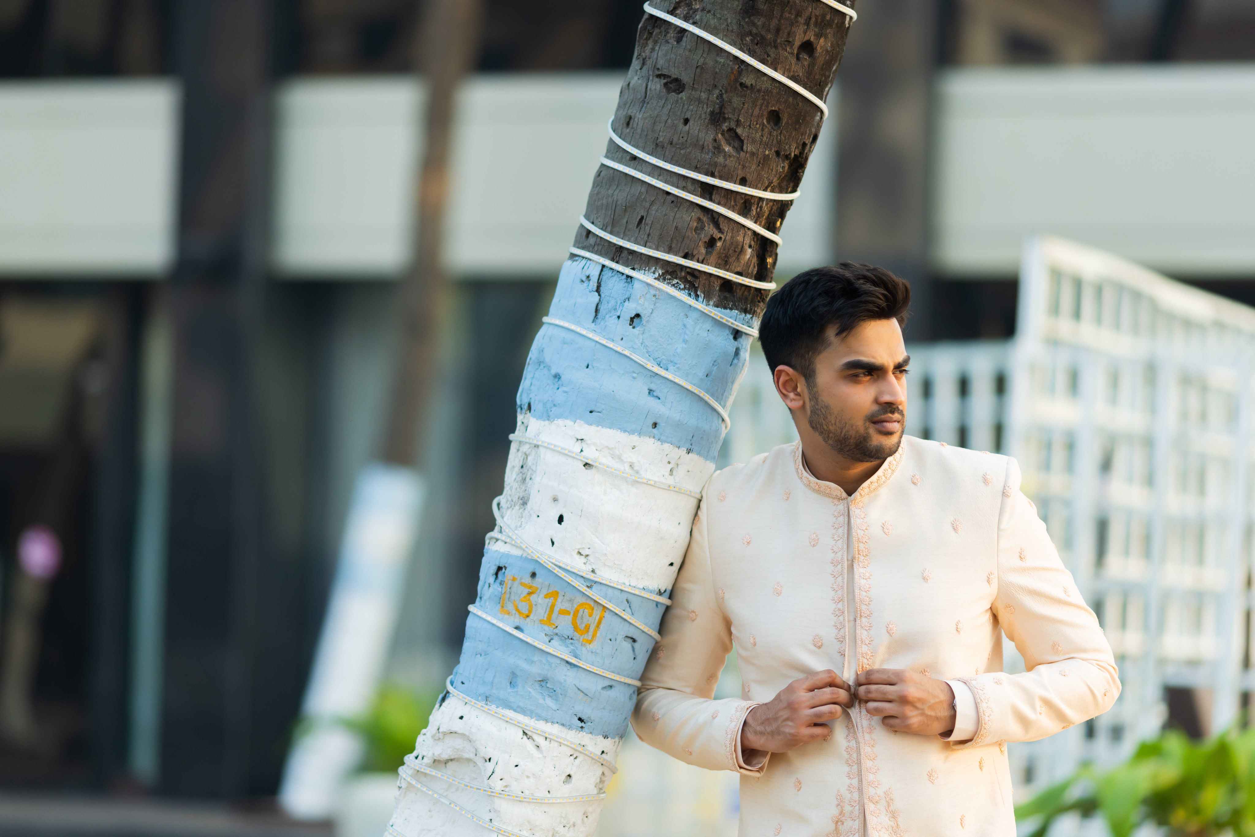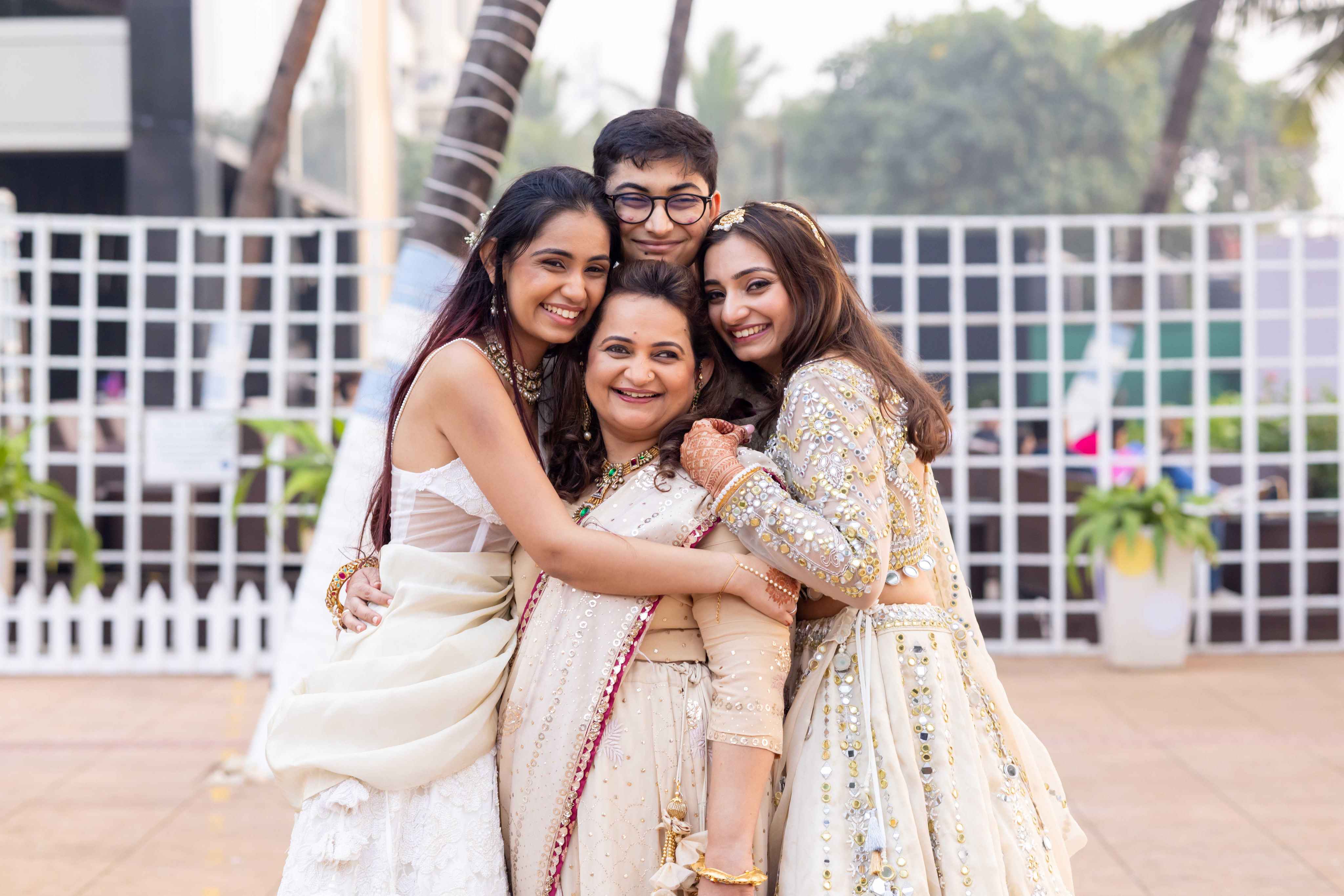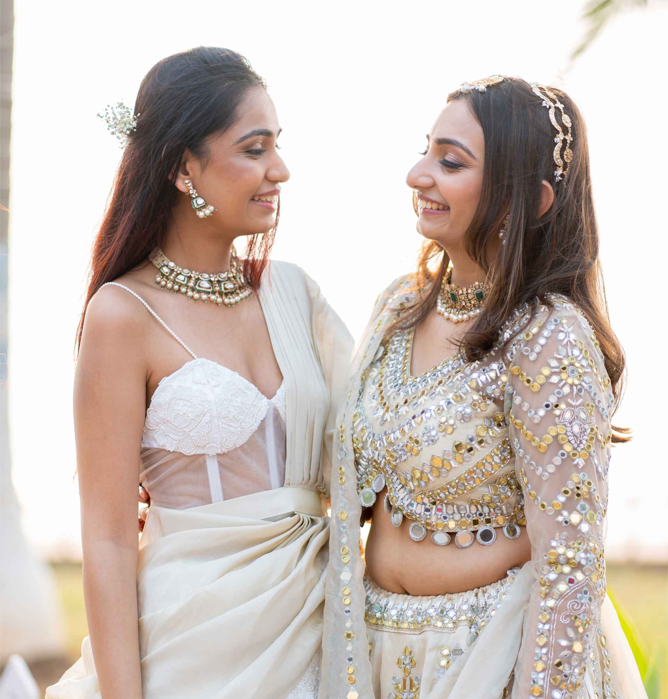 The theme was an enchanted garden where the evening commenced with the couple walking with the bridesmaids and family leading them. The ceremonies kicked off with the families sitting across. The groom's family adorned Jeel with clothes & jewels. Thereafter the family performances commenced and the event was taken over by a live band. The guests were engaged at the exotic garden bar to many other live activities like perfume making and paan mixing. Food was curated to their choice taking center stage was the Ponkh & Kathiyavadi Station. The couple exchanged rings to a flower shower under an open sky followed by portraits with the family. The band was reinstated and the vibe was high which was then taken over by the DJ. A match made in heaven and one that was truly so special.