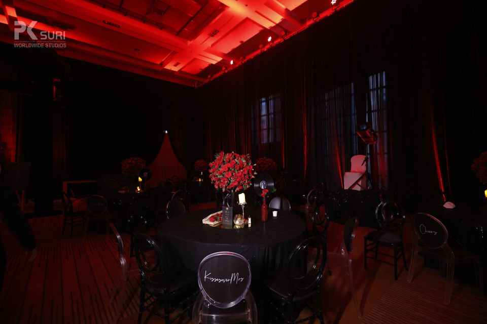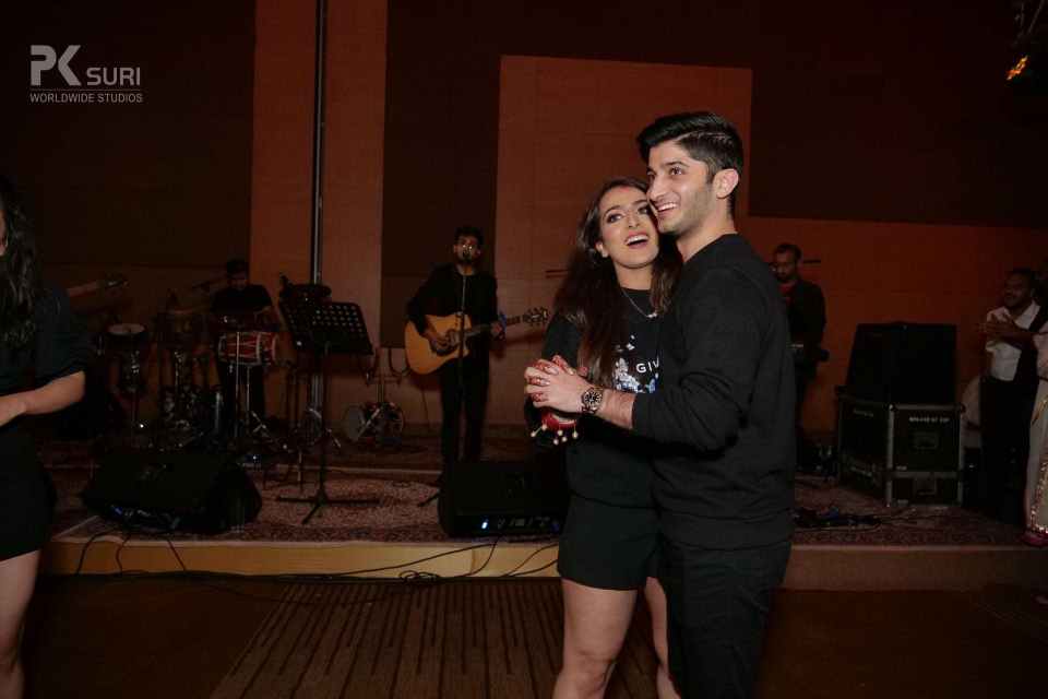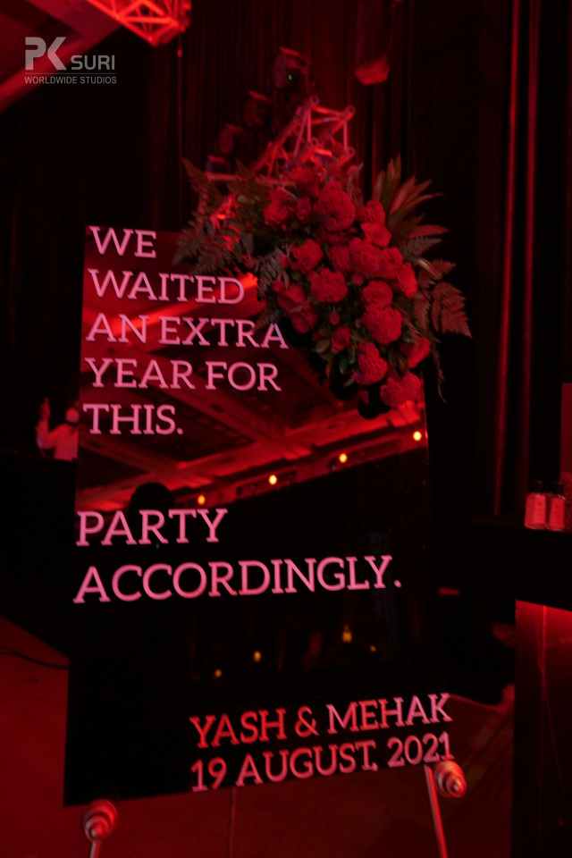 Guns & Roses was the theme for the night, a night that was dressed in black and red. A cocktail where the couple took center stage and everything was royal and red. The signage at the entry read we’ve waited for a year so party accordingly. The evening kicked off with the couple entering to a " Sky Full of Stars " and breaking into a dance then followed by performances of the entire family followed by the friends. Yash went down on his knees to put a ring on Mehak and we raised a toast to the beautiful couple. DJ Aman Nagpal took over the night with his Dhol team. What a night it was going into the wee hours of the morning with the bar being the highlight.