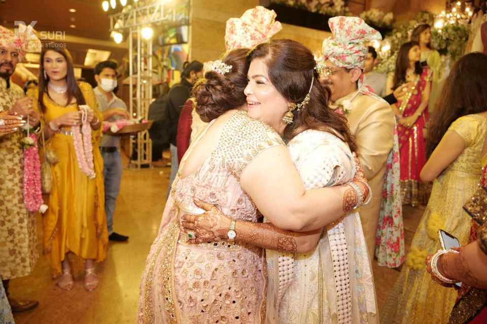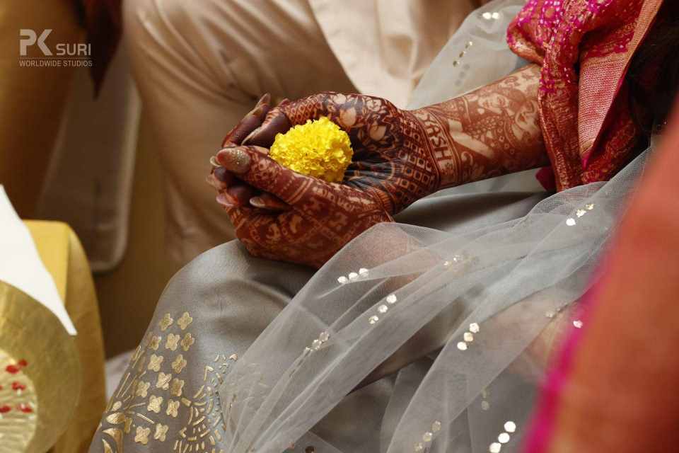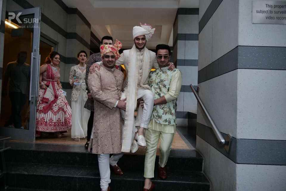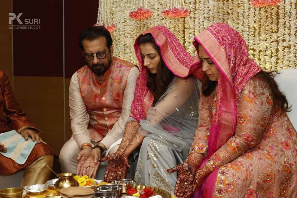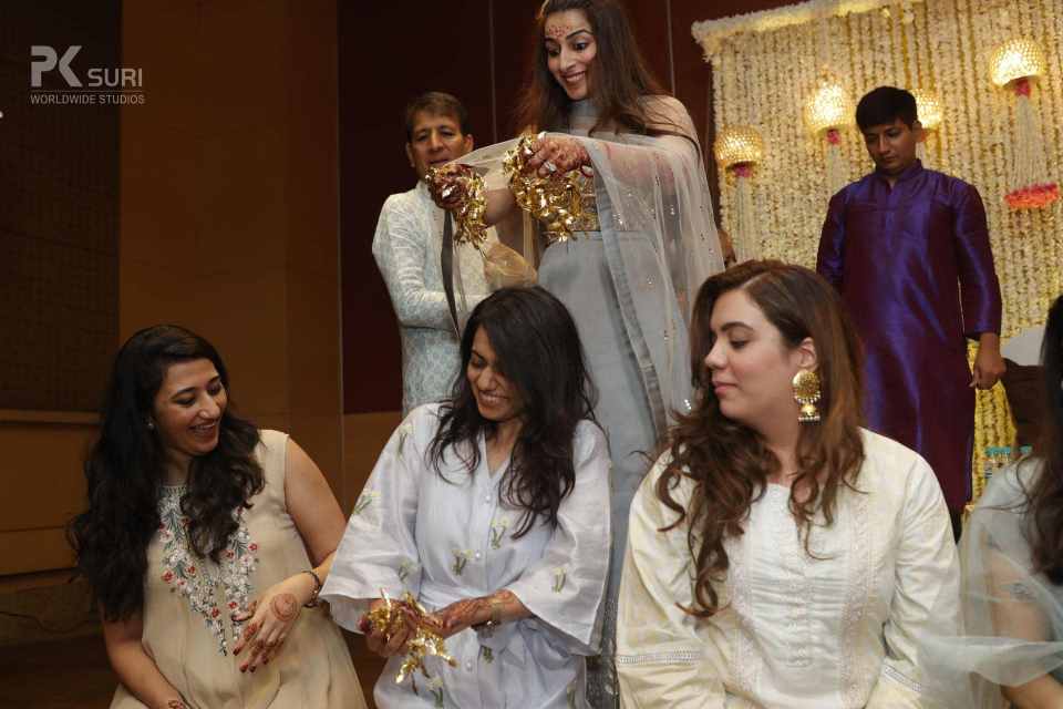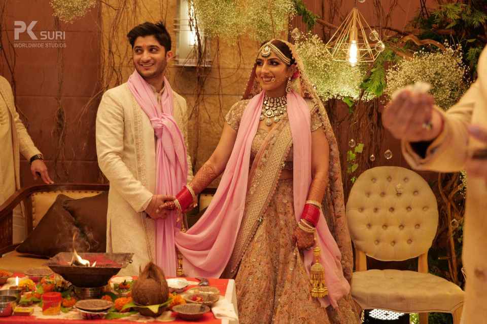 The Ghari Puja of both Mehak & Yash kicked off in simultaneous rooms. The rituals were meticulously executed by the pandit. The groom's friends tore his clothes and drenched him in water. These moments are the ones that stay with us.