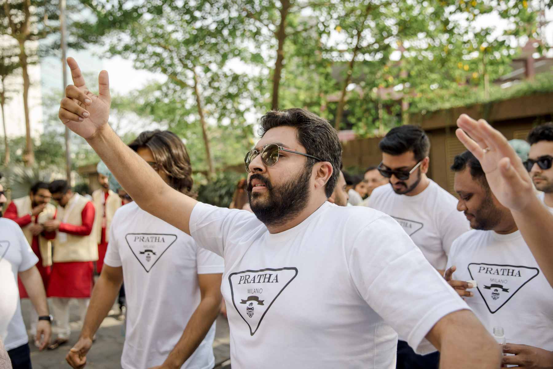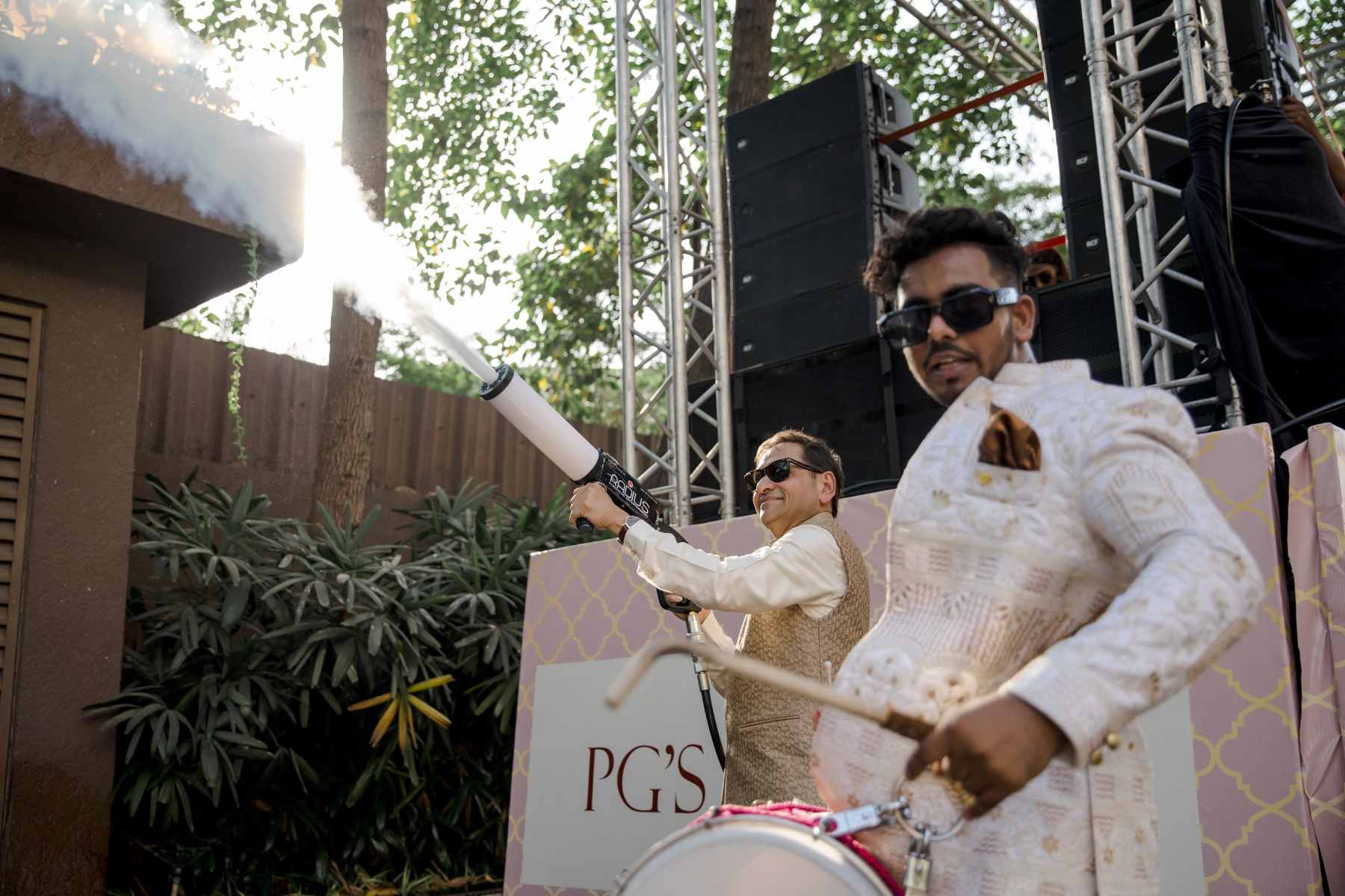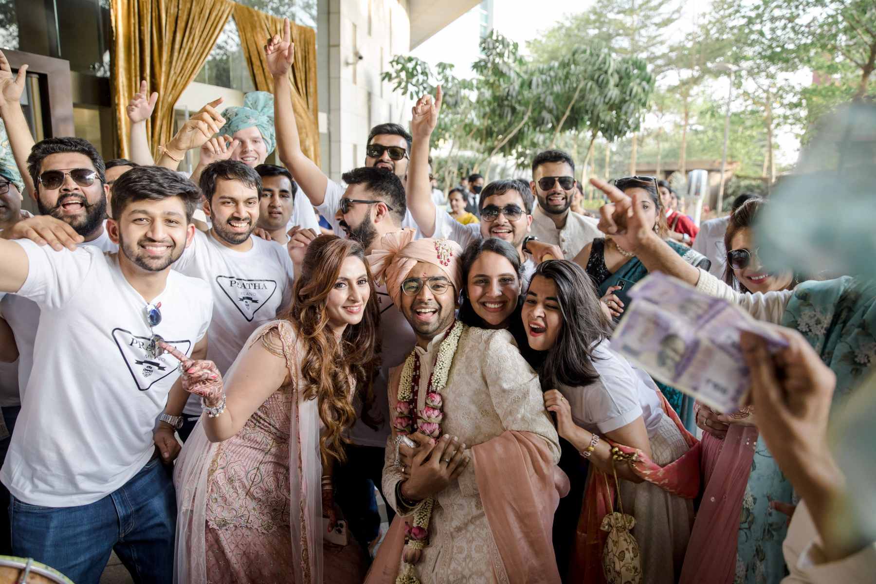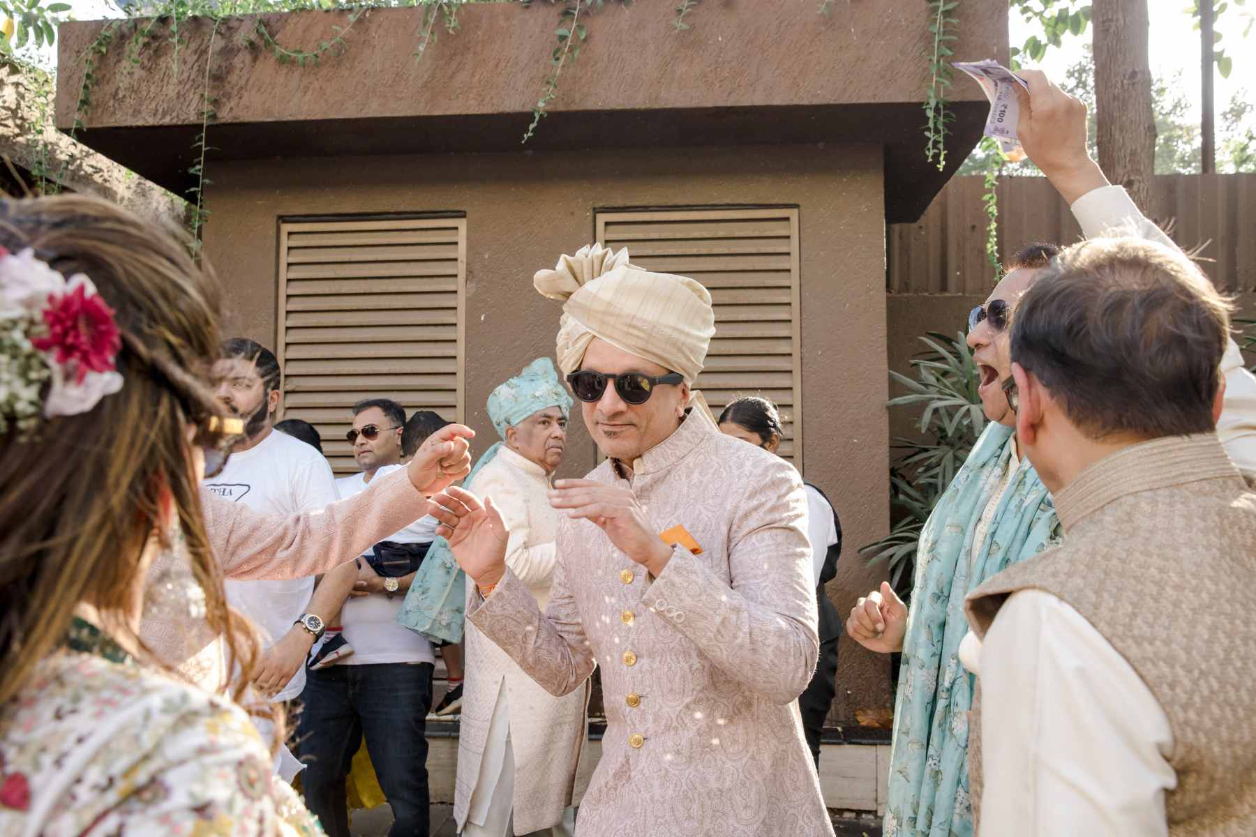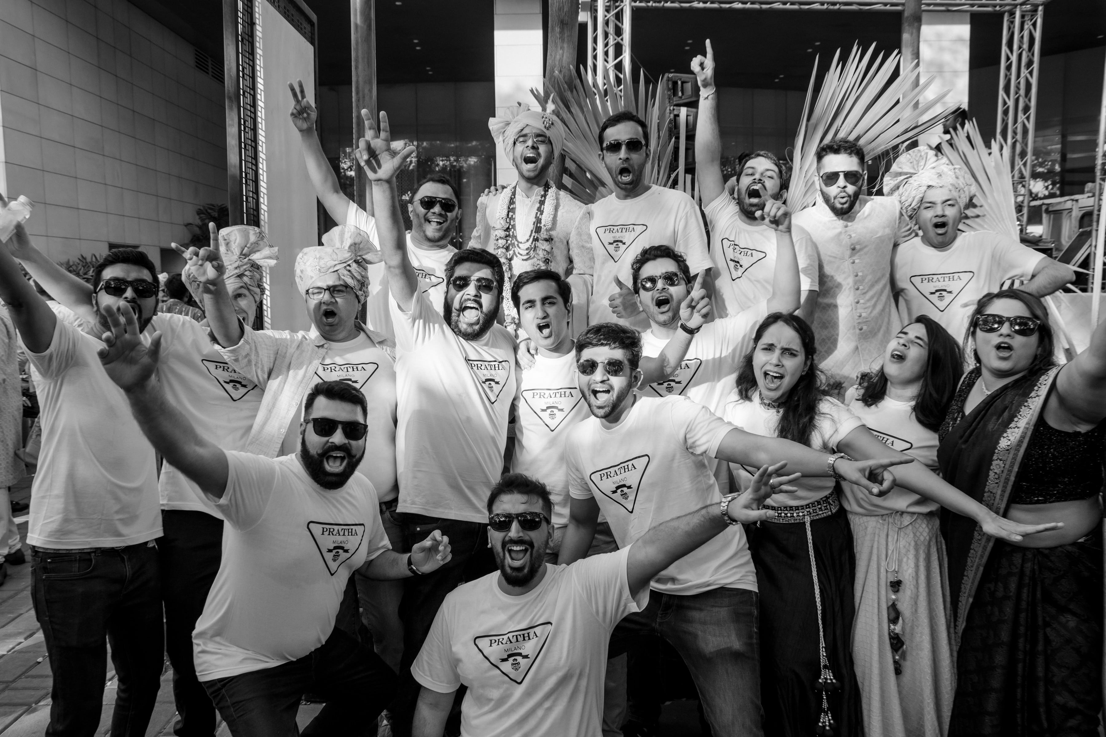 The Baraat came in style to take Shannel home, a long trailer that read "Let’s Take Shannel Home" with a DJ stationed on it grooving to the best Baraat tracks. It was a high-energy Baraat with all the friends wearing PRATHA T-Shirts and smoke guns blaring away. Everyone wore customized sunglasses. The groom with his sister came in a beautifully dressed Beamer. The Baraat was welcomed by the so-called 'Ladkiwale' in style with favors for the baraatis.