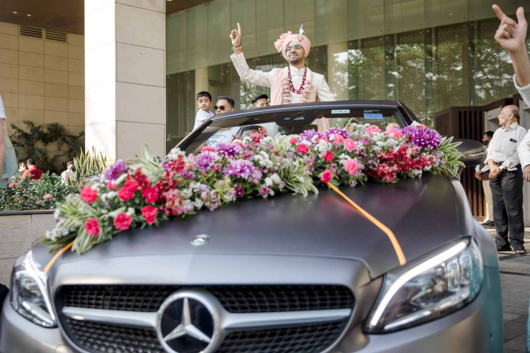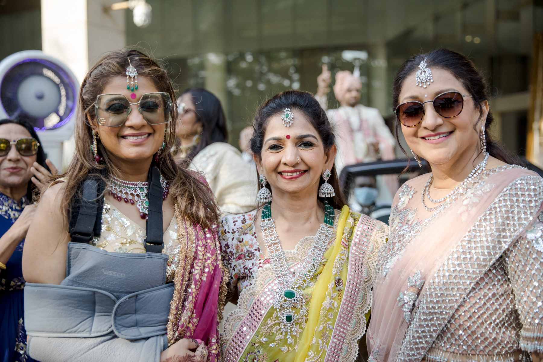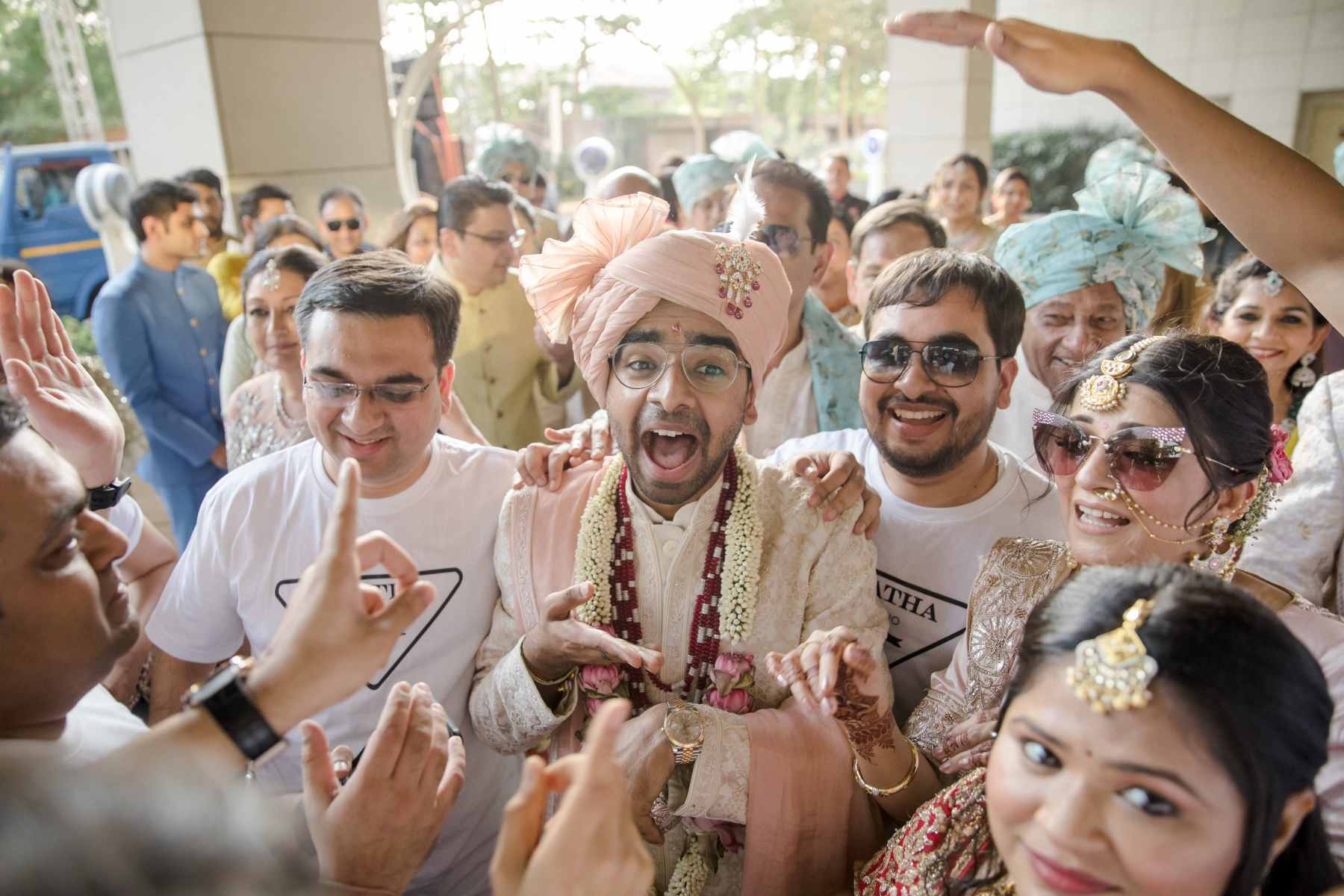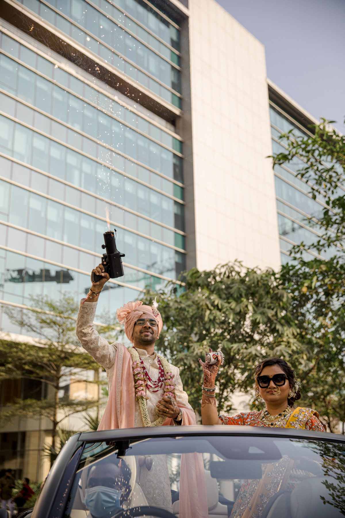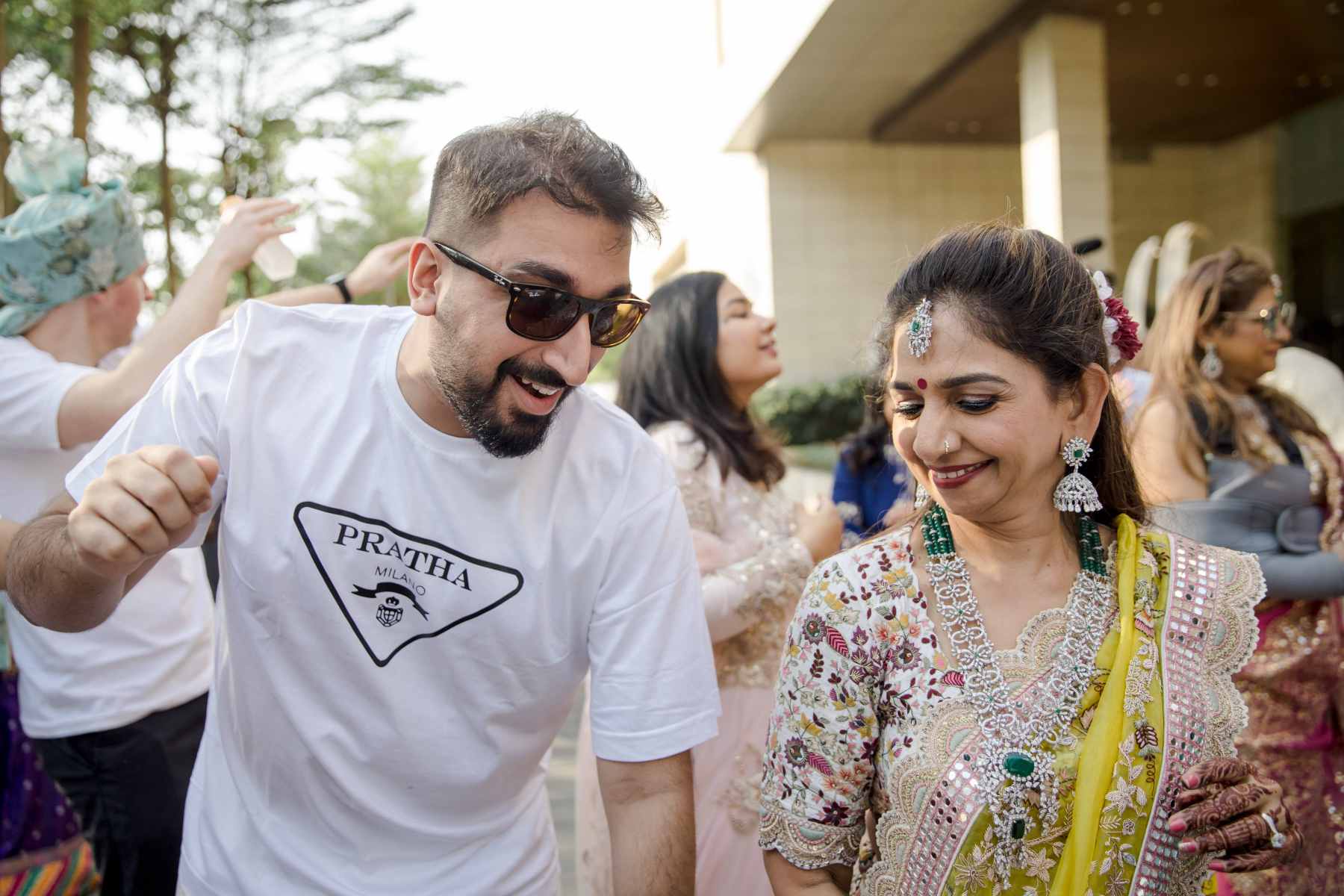 The Baraat came in style to take Shannel home, a long trailer that read "Let’s Take Shannel Home" with a DJ stationed on it grooving to the best Baraat tracks. It was a high-energy Baraat with all the friends wearing PRATHA T-Shirts and smoke guns blaring away. Everyone wore customized sunglasses. The groom with his sister came in a beautifully dressed Beamer. The Baraat was welcomed by the so-called 'Ladkiwale' in style with favors for the baraatis.