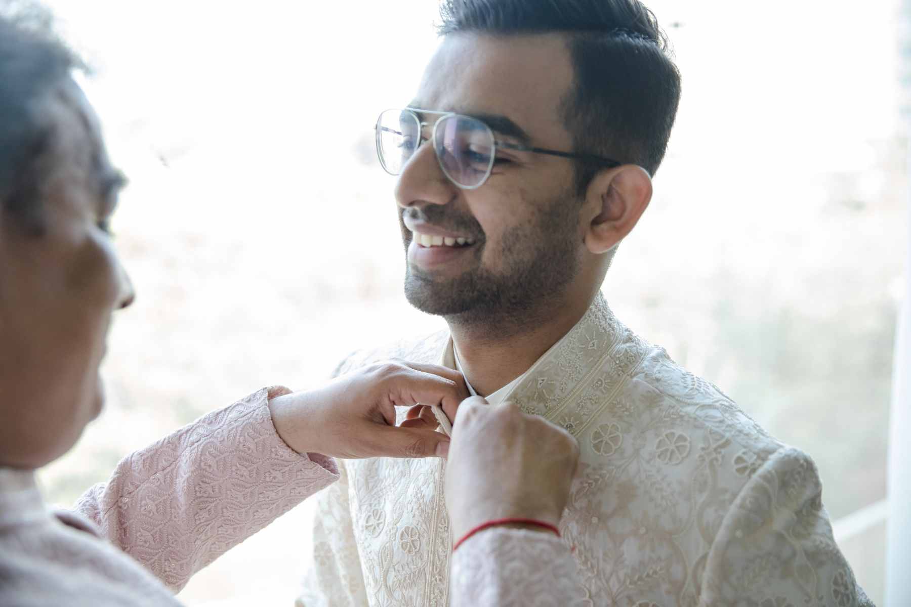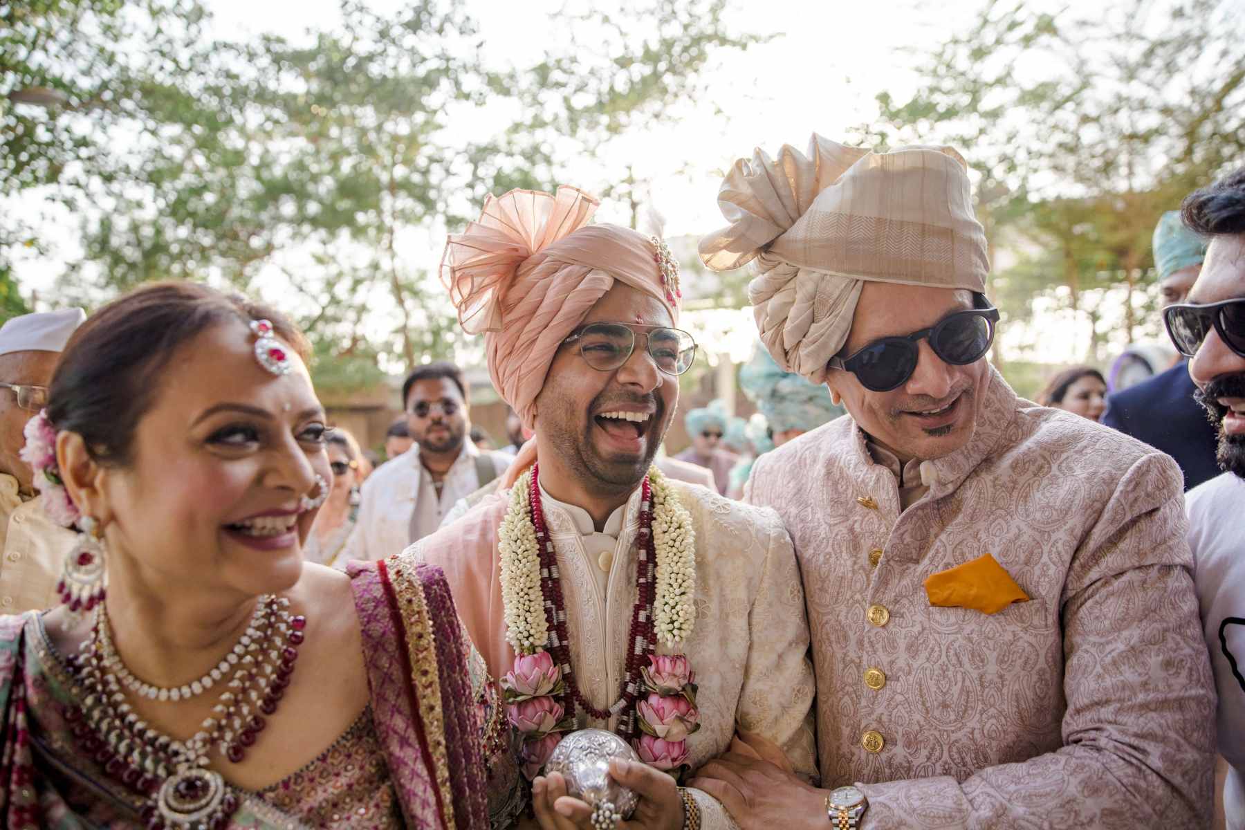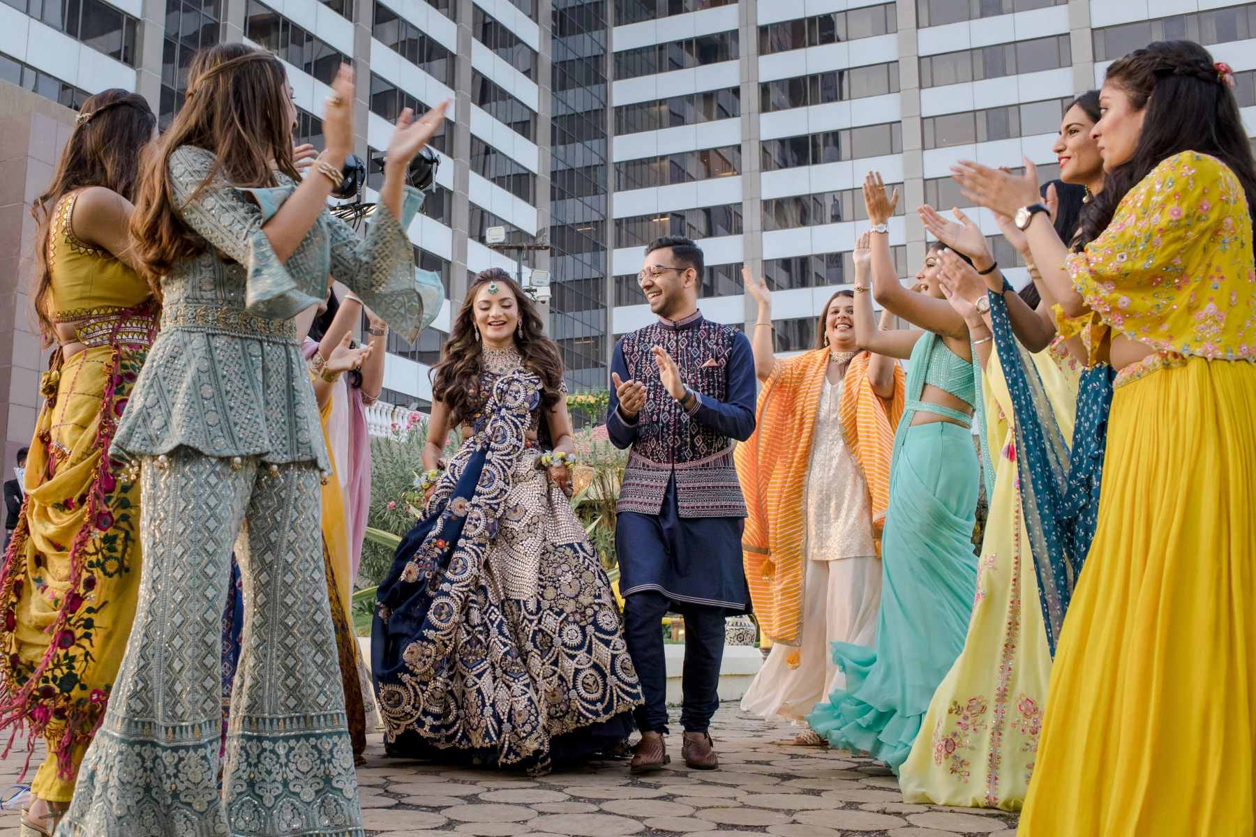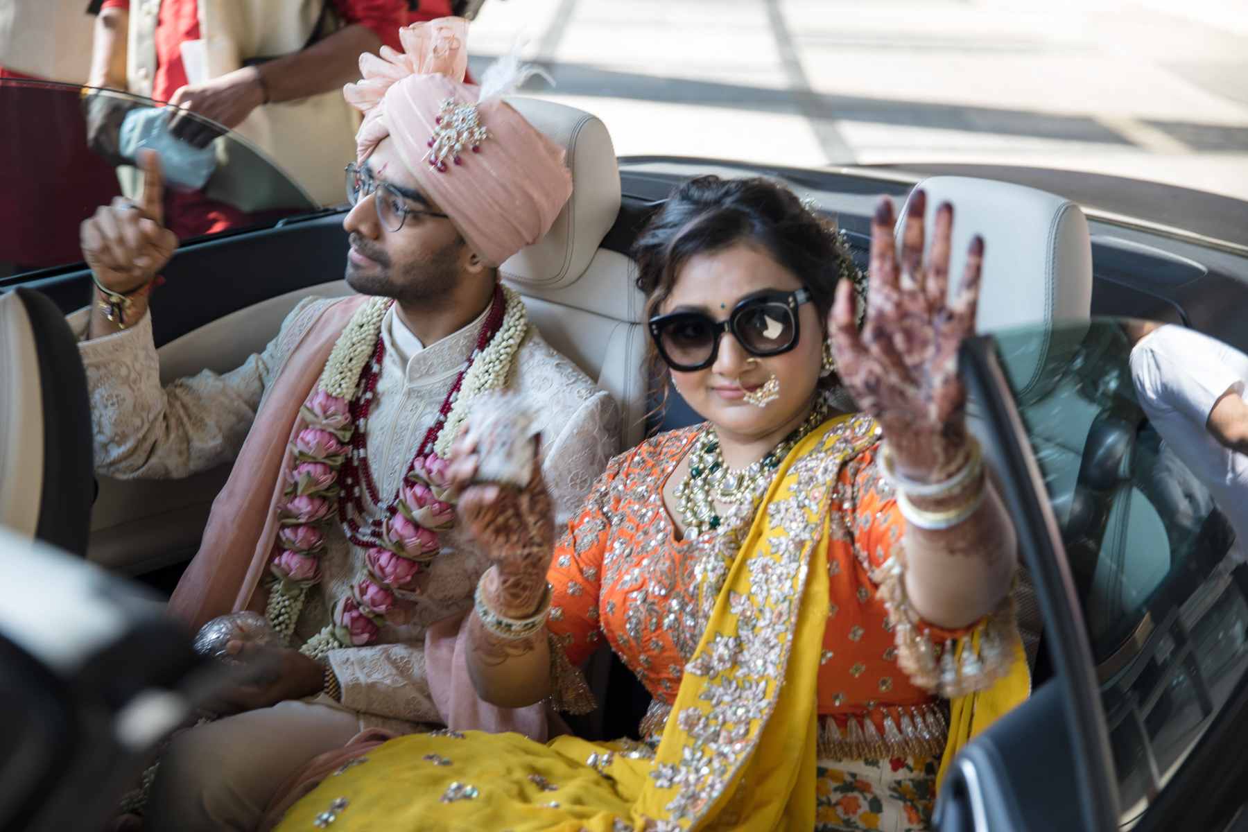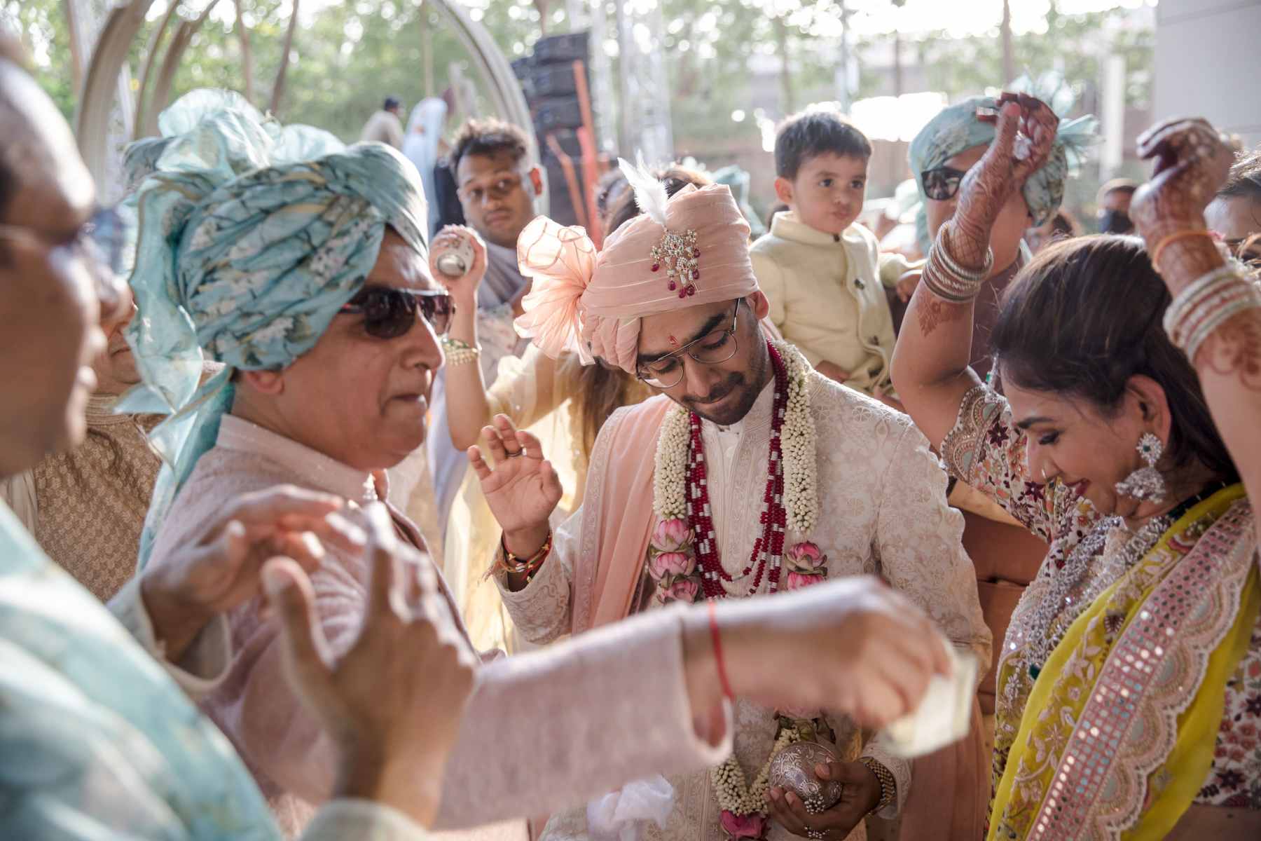 The Baraat came in style to take Shannel home, a long trailer that read "Let’s Take Shannel Home" with a DJ stationed on it grooving to the best Baraat tracks. It was a high-energy Baraat with all the friends wearing PRATHA T-Shirts and smoke guns blaring away. Everyone wore customized sunglasses. The groom with his sister came in a beautifully dressed Beamer. The Baraat was welcomed by the so-called 'Ladkiwale' in style with favors for the baraatis.
