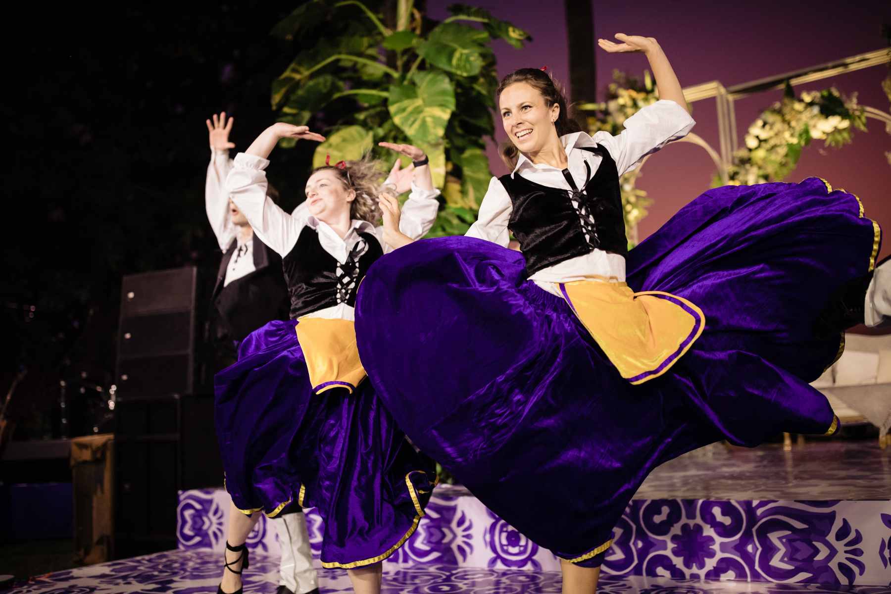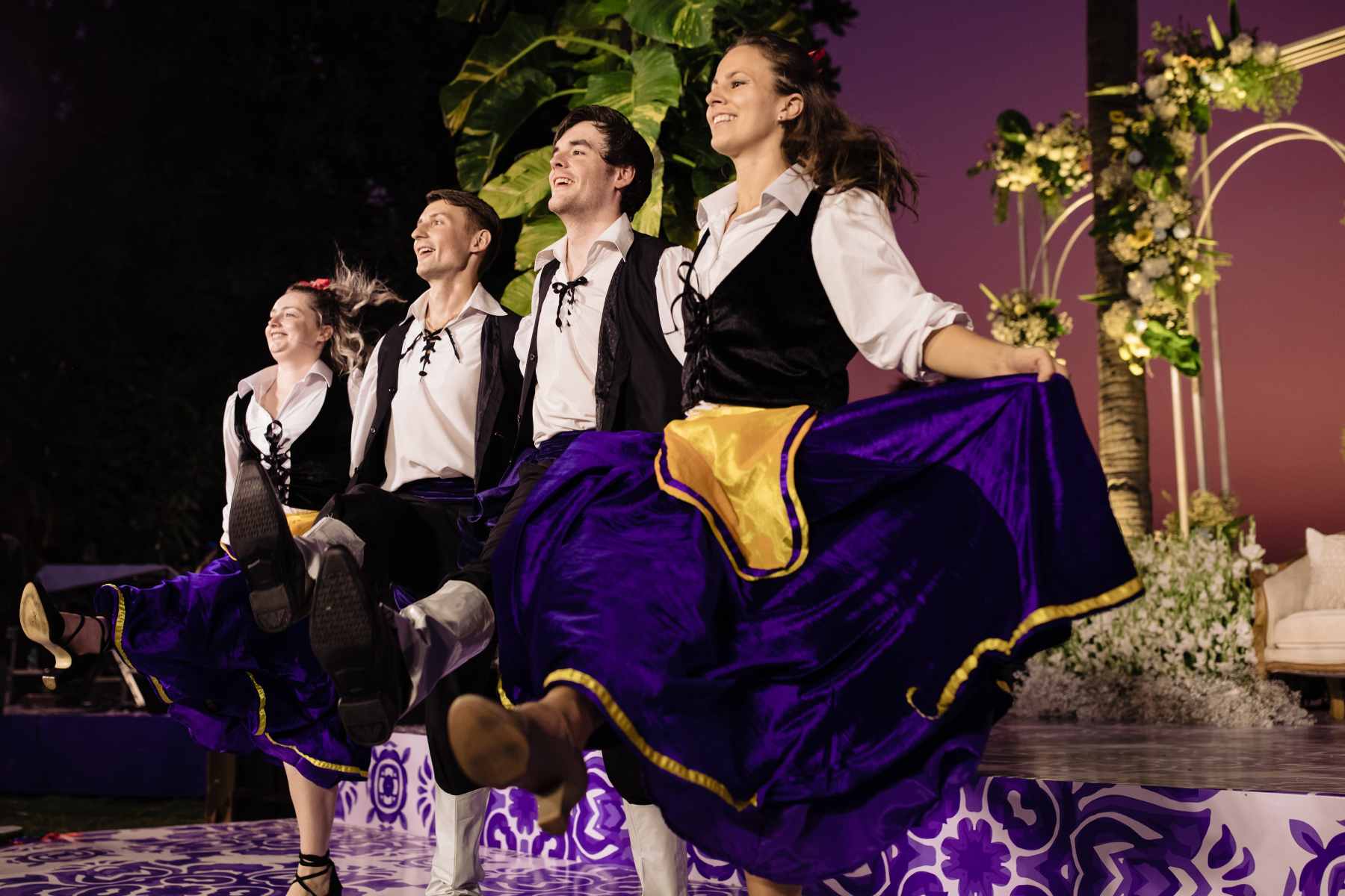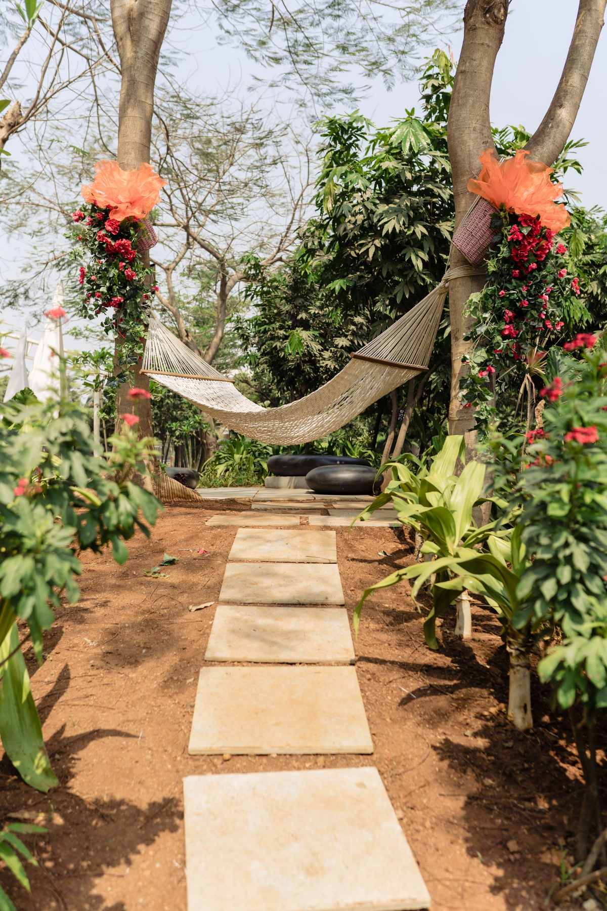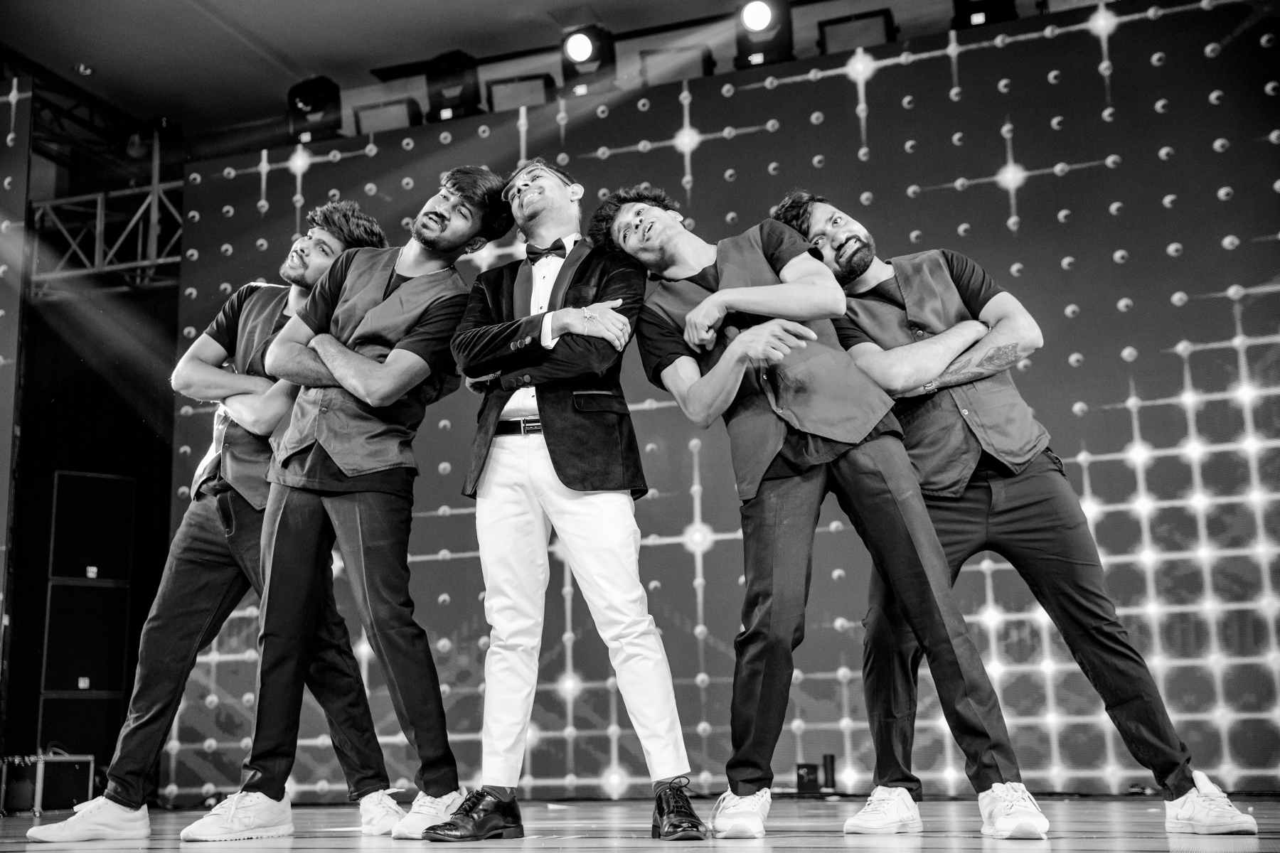 Set against the scenic backdrop of the lawns of Taj Lands End with the sun going down this Tuscan Affair was filled with small pretty details and loads of punk and drama. The friends welcomed the couple to the venue with tambourines and lit balloons and the performances took center stage. Curated cocktails & food got the night started with loads of activities for the guests ranging from an Evil Eye Bar, Toss the Coin to Coffee Residue Reader. A setting where all guests clicked pictures with the Vespa was endearing. We had dancers who performed the Tuscan Tarantella Dance and got the guests grooving, the band was phenomenal and the guests enjoyed it thoroughly. The favours were beautifully packed herbs in test tubes as takeaways. An evening that got the festivities kickstarted.