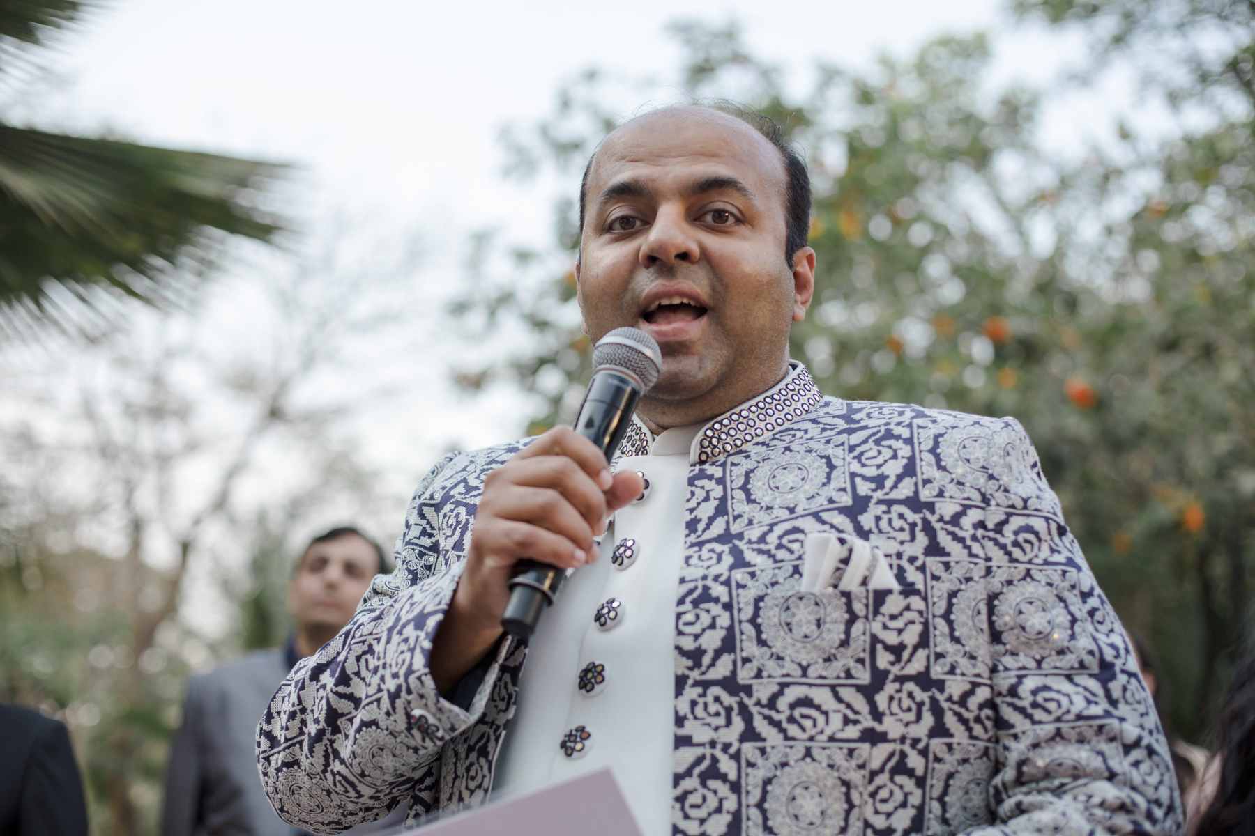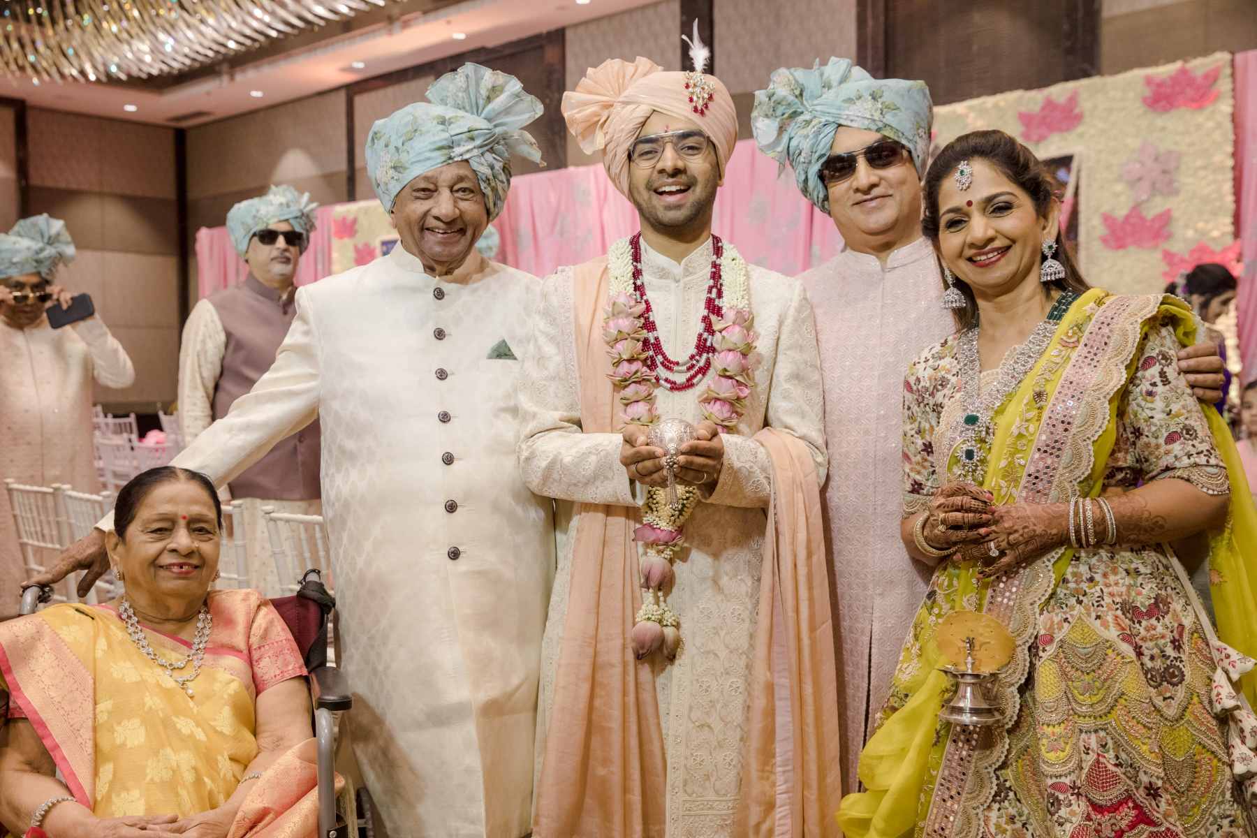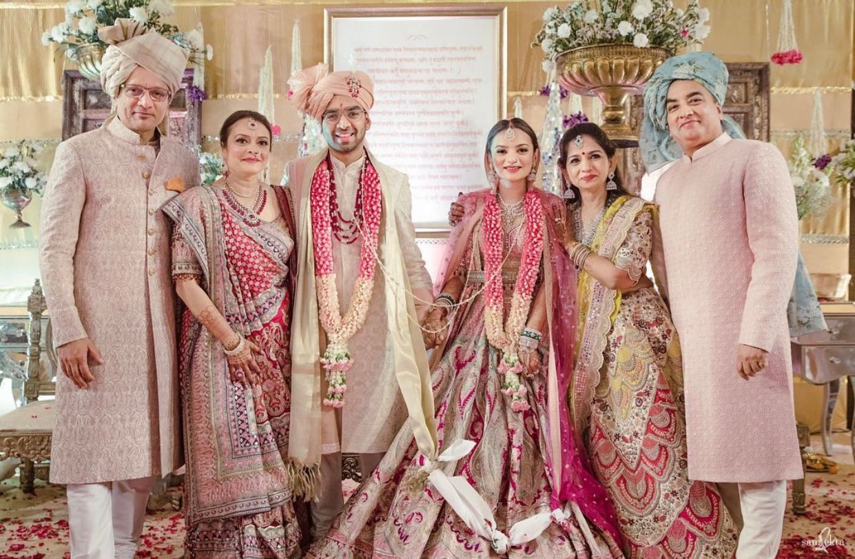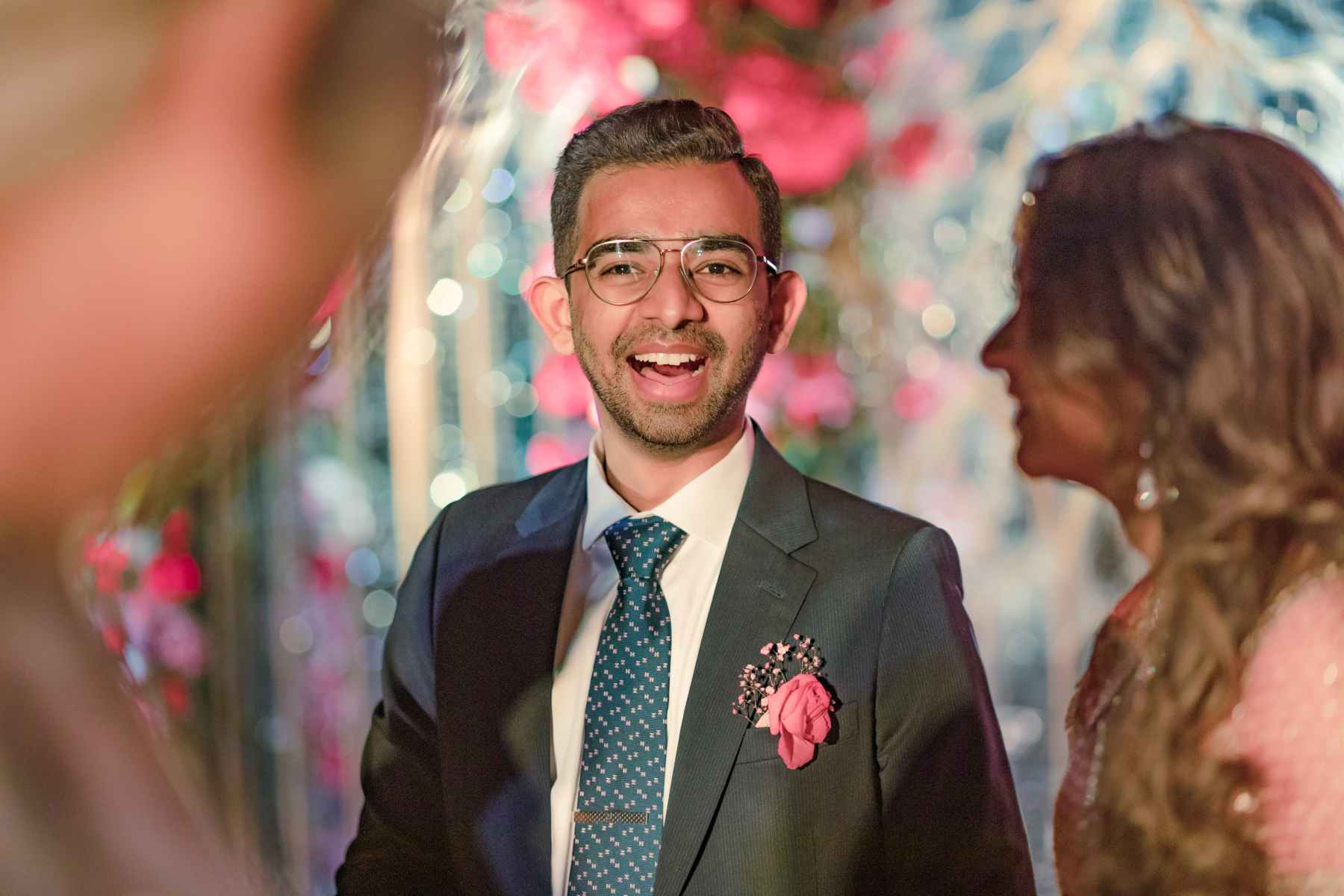 Post the wedding the couple entered the reception to a lawn full of people and sparklers going up to welcome them. It was a traditional reception with an instrumental band playing some blissful tunes while the couple mingled with guests who were there to congratulate them. Post this there were some post-wedding fun games followed by a family sit-down dinner and vidaai ceremony.