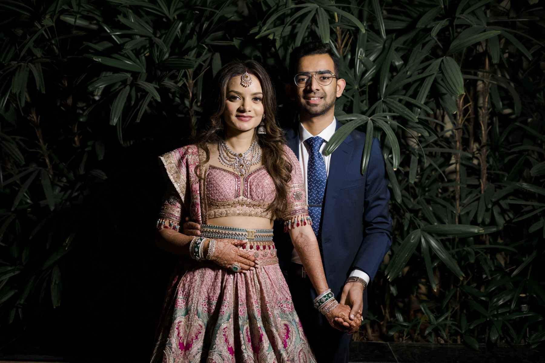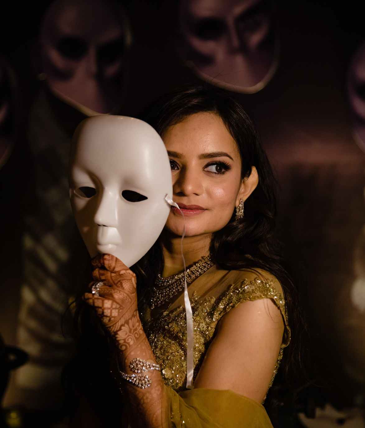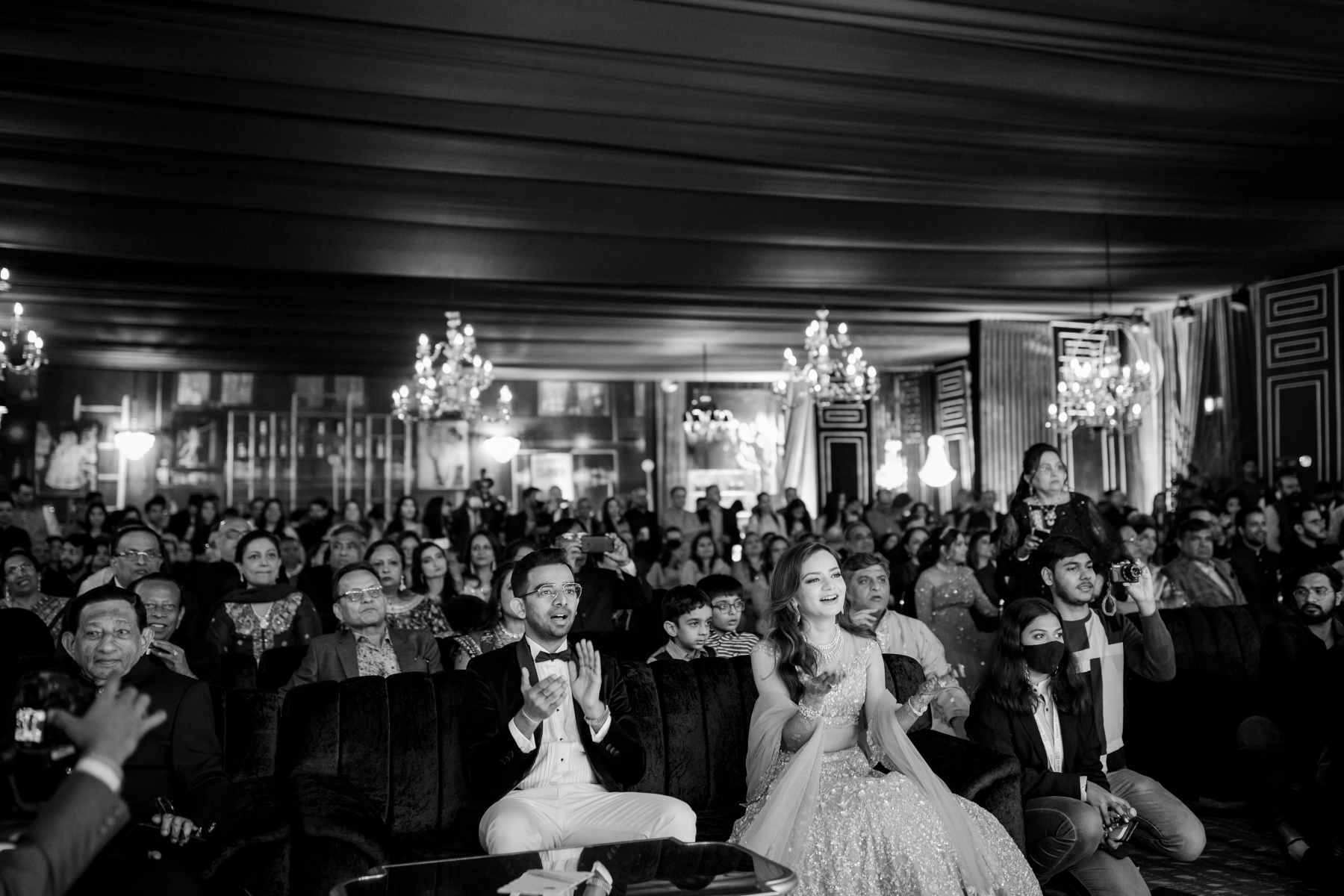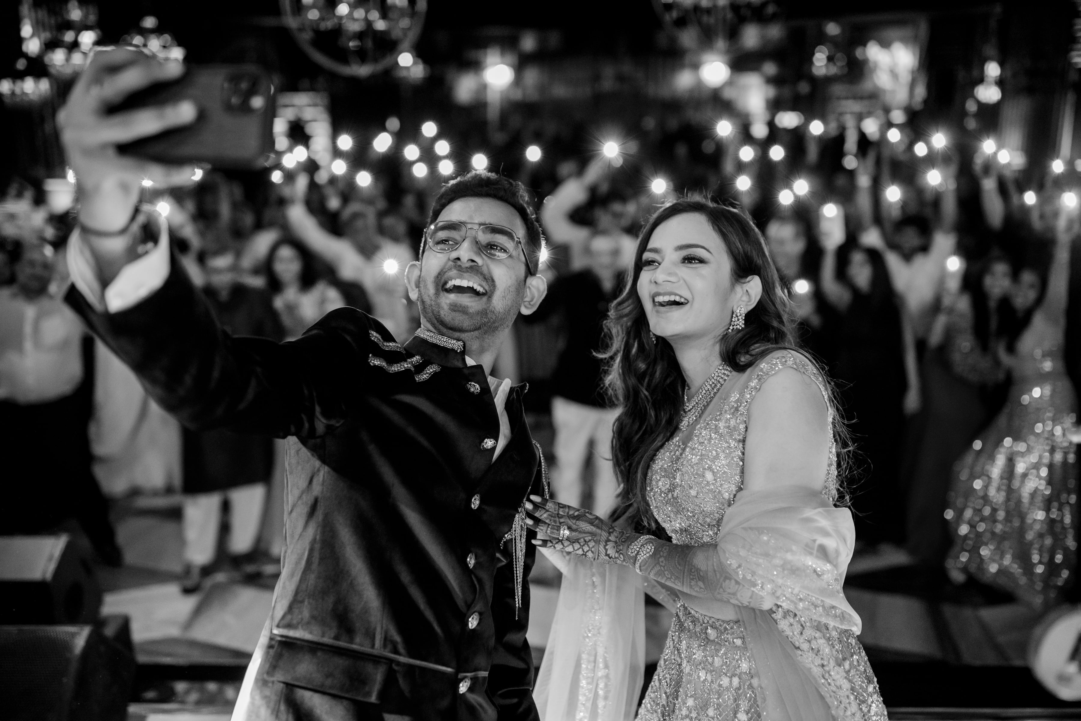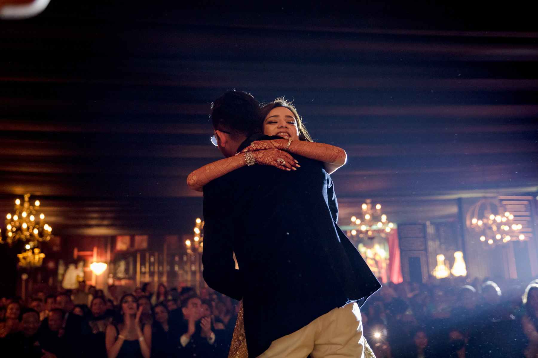 Pratham belonged to a university in Chicago & Shannel belonged to a university in New York. That's where we gathered the theme of Speakeasy, considering the prohibition bar vibe in both cities. The decor transformed everyone to a dungeon vibe and it was surreal with a smoky hidden entryway. Pratham & Shannel looked like a million bucks and the decor just complimented their personalities. There was a speakeasy bar with various types of old-world cocktails, the lounges transported you back in time, and there was a jazz lounge, cigar lounge, and a library. There was an illusionist and a saxophonist just blending with the vibe. The performances took center stage with the family, friends, and the couple dancing to Bollywood moves. The Best Kept Secret band took over with a thousand torch lights flashing and a sight to behold then followed by the best DJ in town taking over with the best percussionist and it was a party that went on till dawn.