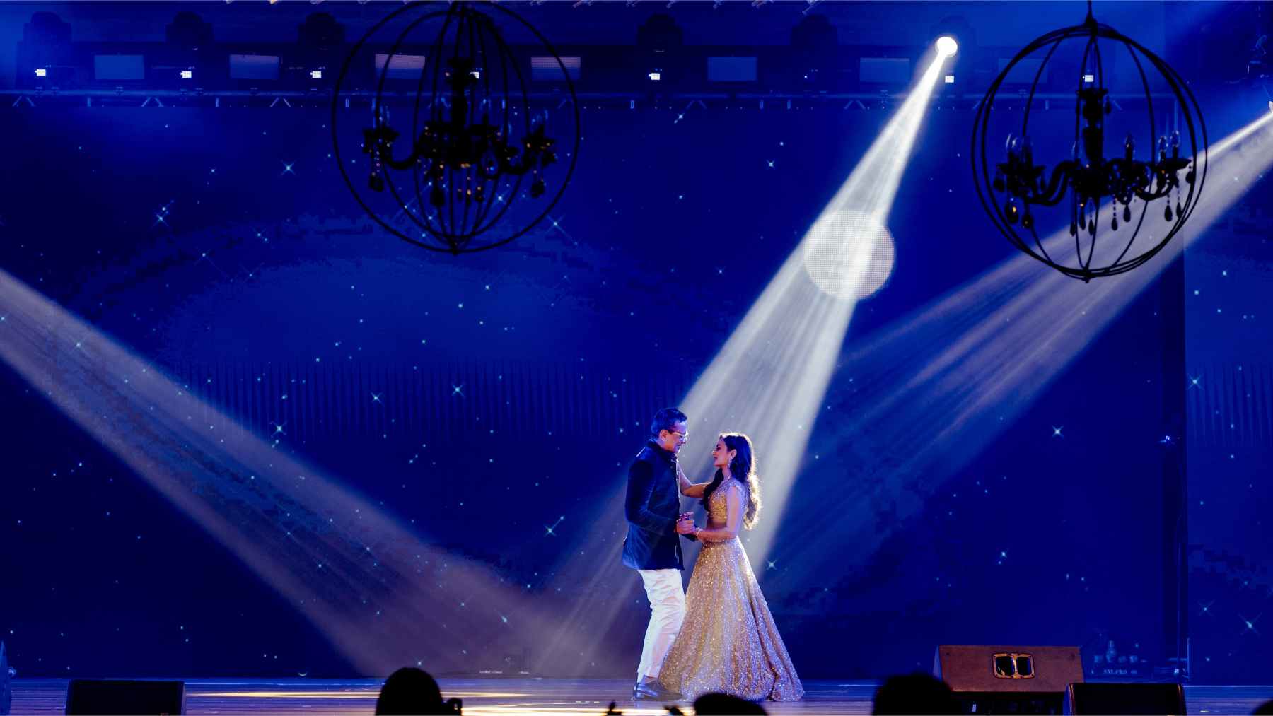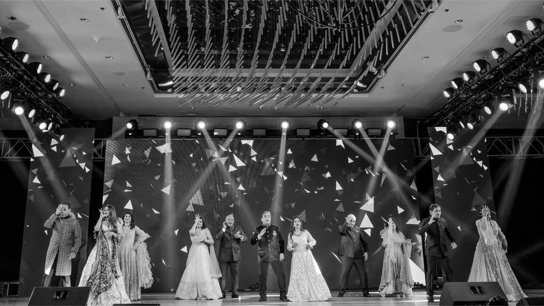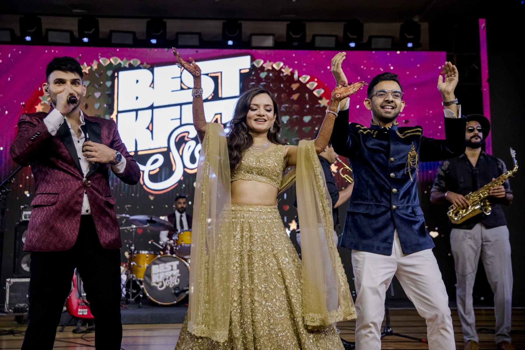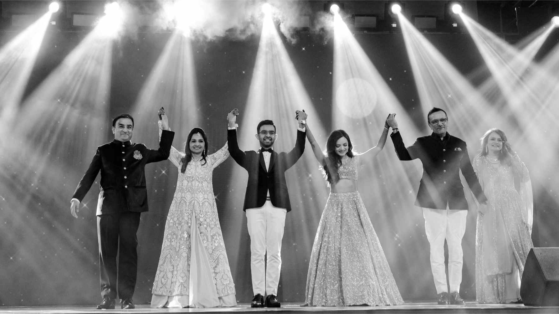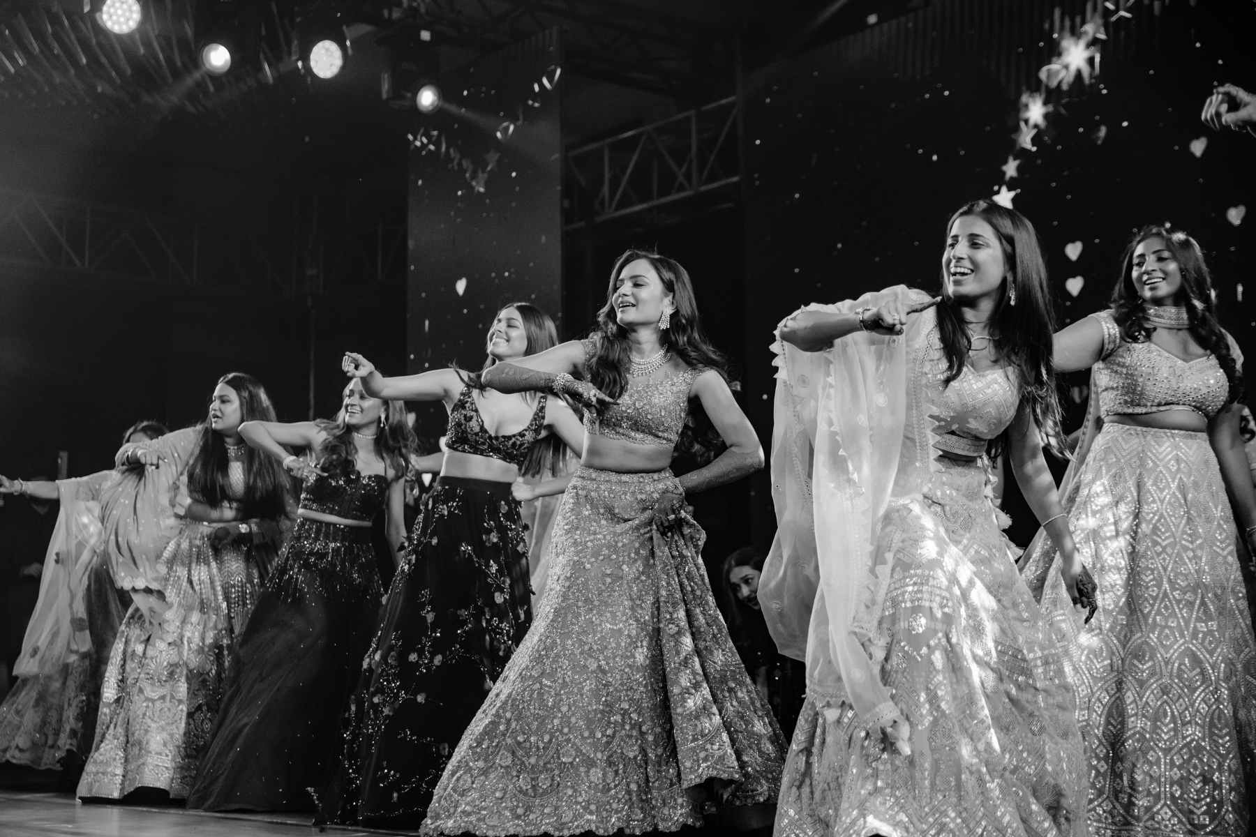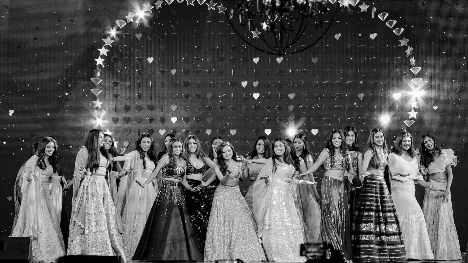 Pratham belonged to a university in Chicago & Shannel belonged to a university in New York. That's where we gathered the theme of Speakeasy, considering the prohibition bar vibe in both cities. The decor transformed everyone to a dungeon vibe and it was surreal with a smoky hidden entryway. Pratham & Shannel looked like a million bucks and the decor just complimented their personalities. There was a speakeasy bar with various types of old-world cocktails, the lounges transported you back in time, and there was a jazz lounge, cigar lounge, and a library. There was an illusionist and a saxophonist just blending with the vibe. The performances took center stage with the family, friends, and the couple dancing to Bollywood moves. The Best Kept Secret band took over with a thousand torch lights flashing and a sight to behold then followed by the best DJ in town taking over with the best percussionist and it was a party that went on till dawn.