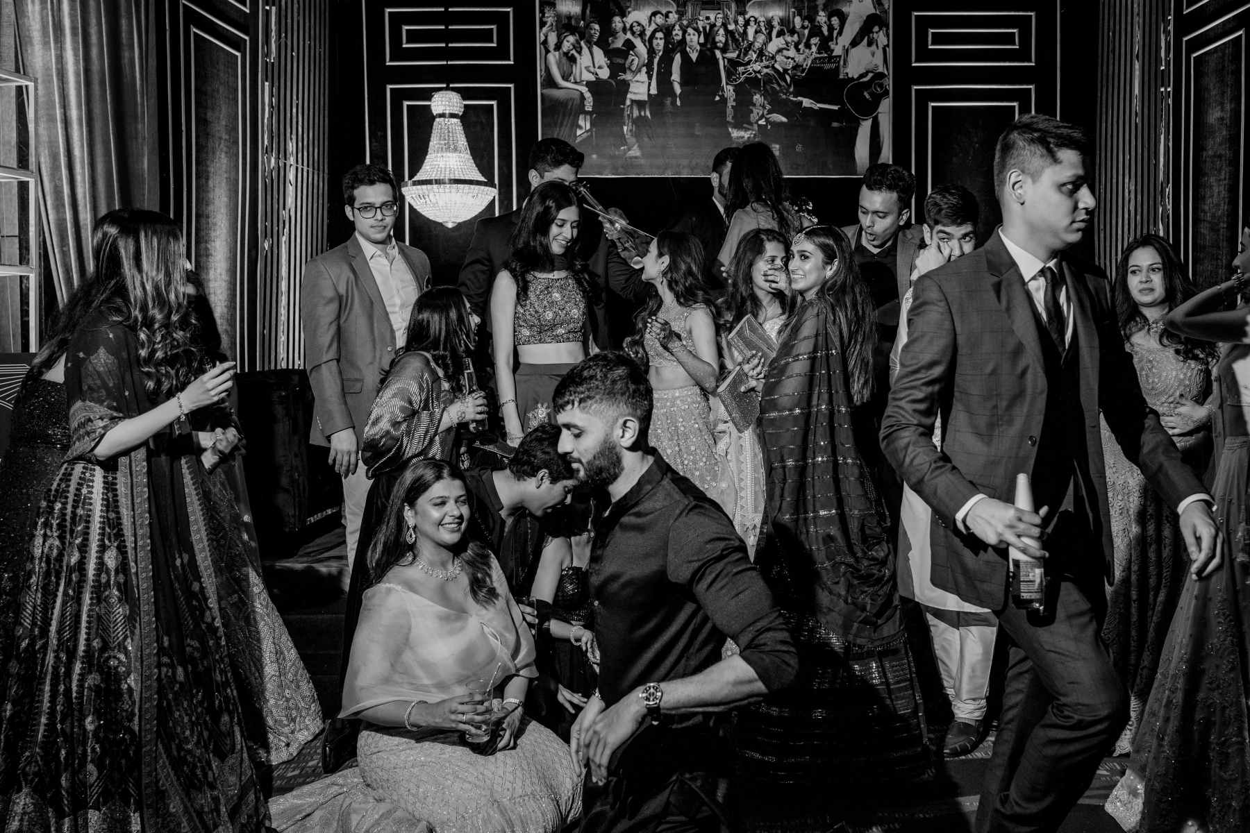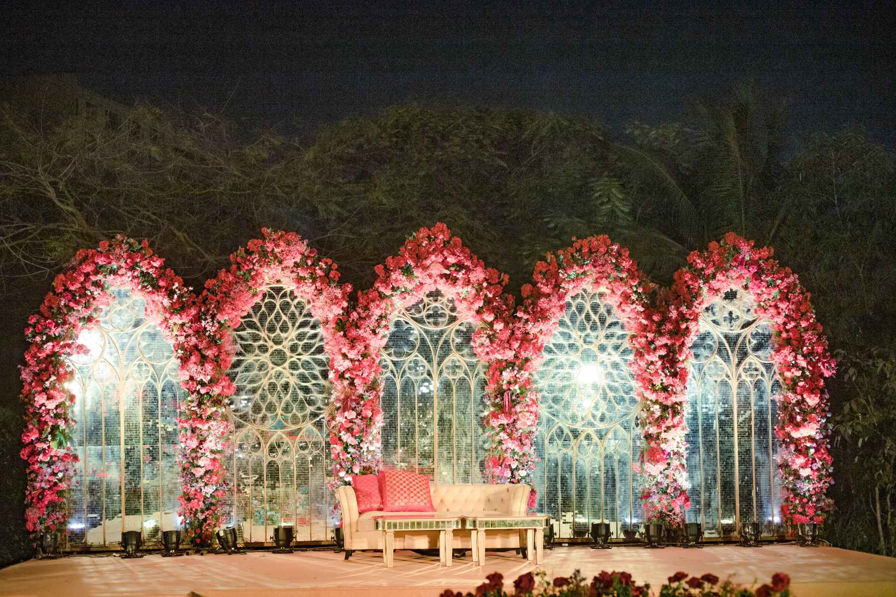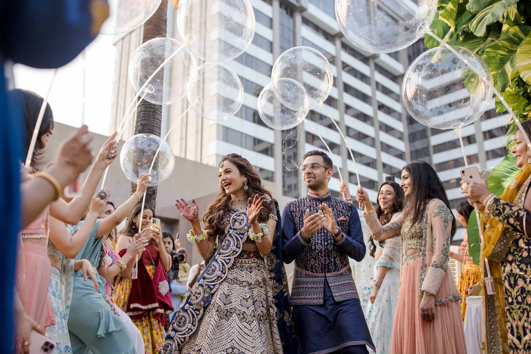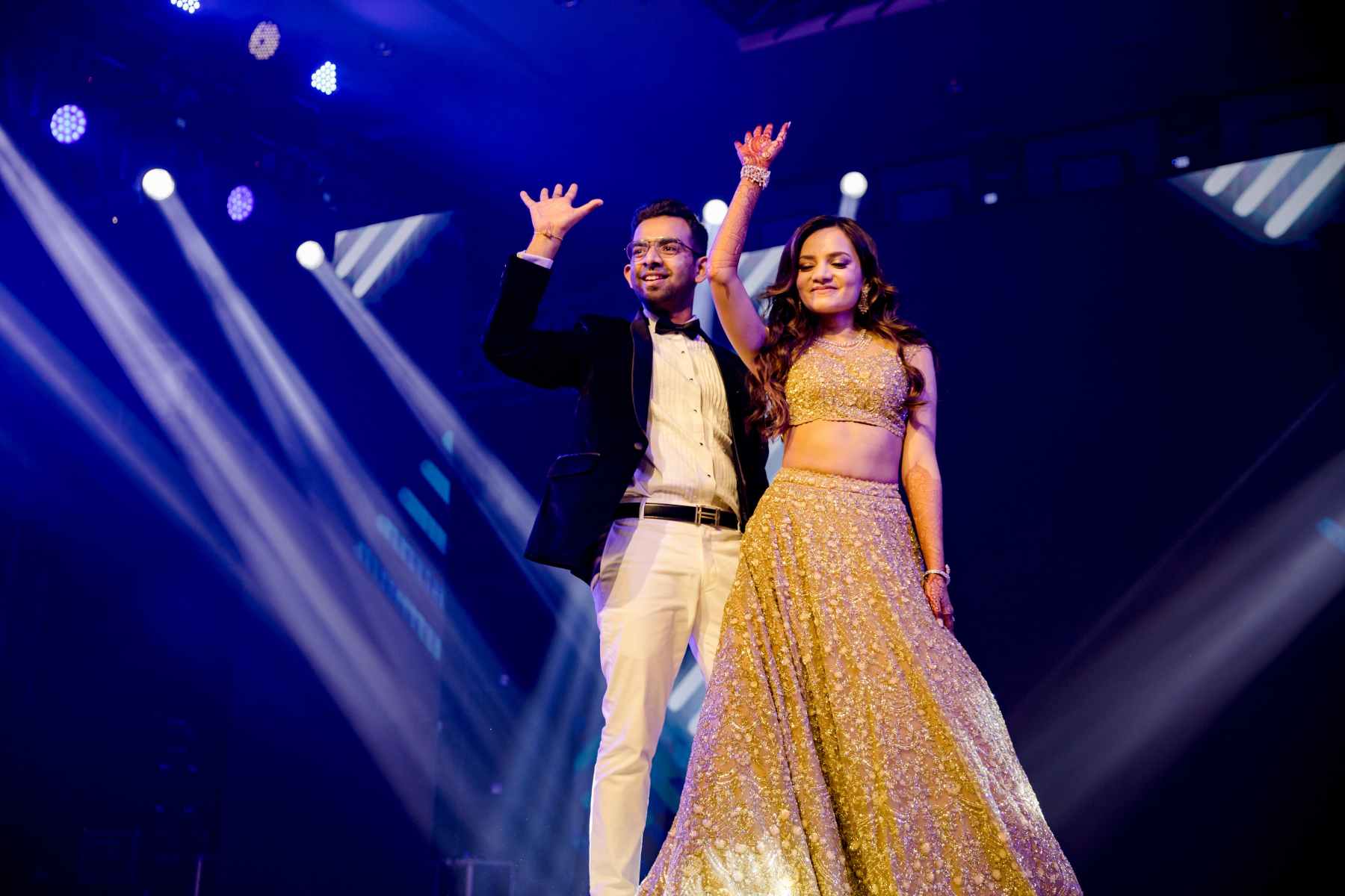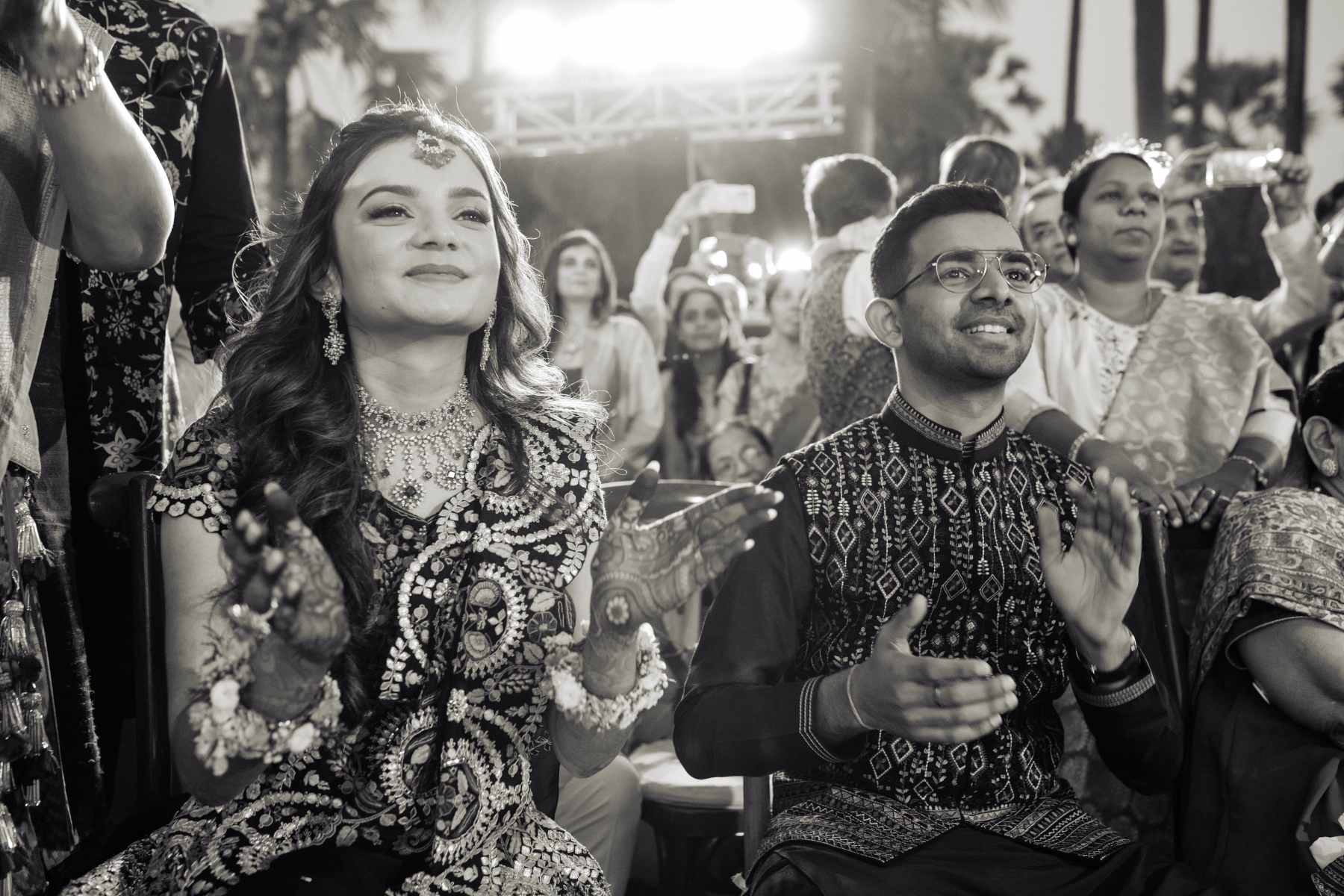 Pratham belonged to a university in Chicago & Shannel belonged to a university in New York. That's where we gathered the theme of Speakeasy, considering the prohibition bar vibe in both cities. The decor transformed everyone to a dungeon vibe and it was surreal with a smoky hidden entryway. Pratham & Shannel looked like a million bucks and the decor just complimented their personalities. There was a speakeasy bar with various types of old-world cocktails, the lounges transported you back in time, and there was a jazz lounge, cigar lounge, and a library. There was an illusionist and a saxophonist just blending with the vibe. The performances took center stage with the family, friends, and the couple dancing to Bollywood moves. The Best Kept Secret band took over with a thousand torch lights flashing and a sight to behold then followed by the best DJ in town taking over with the best percussionist and it was a party that went on till dawn.