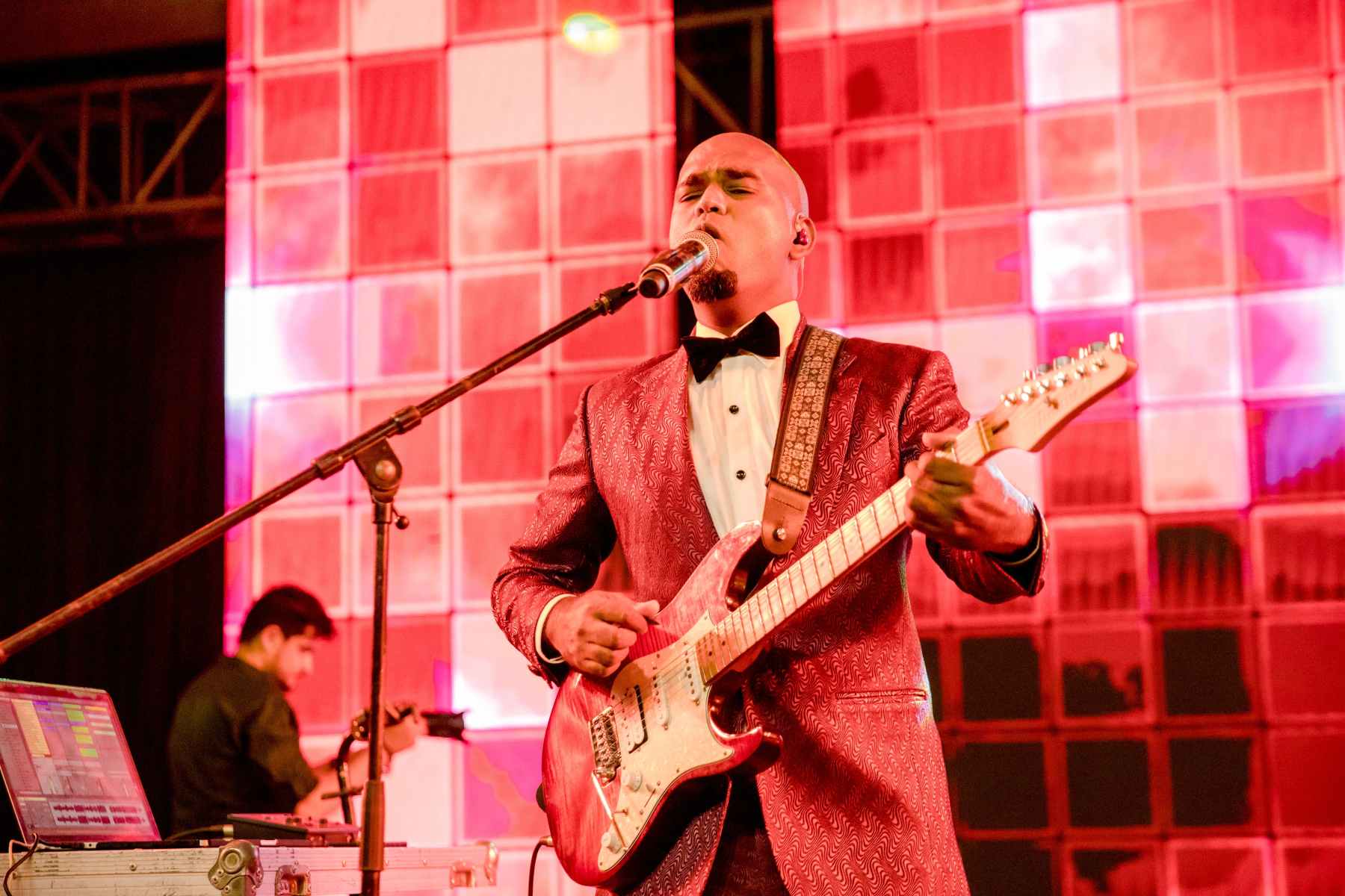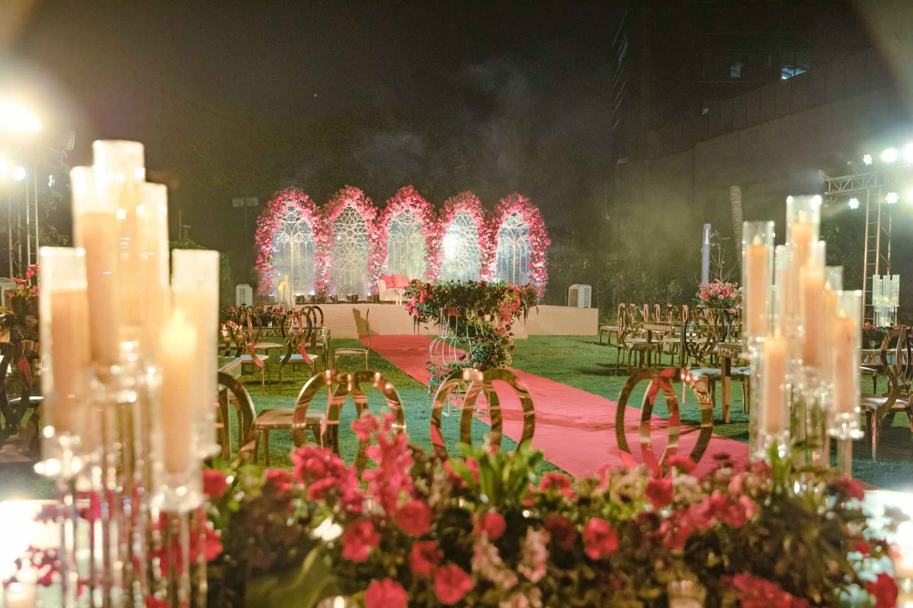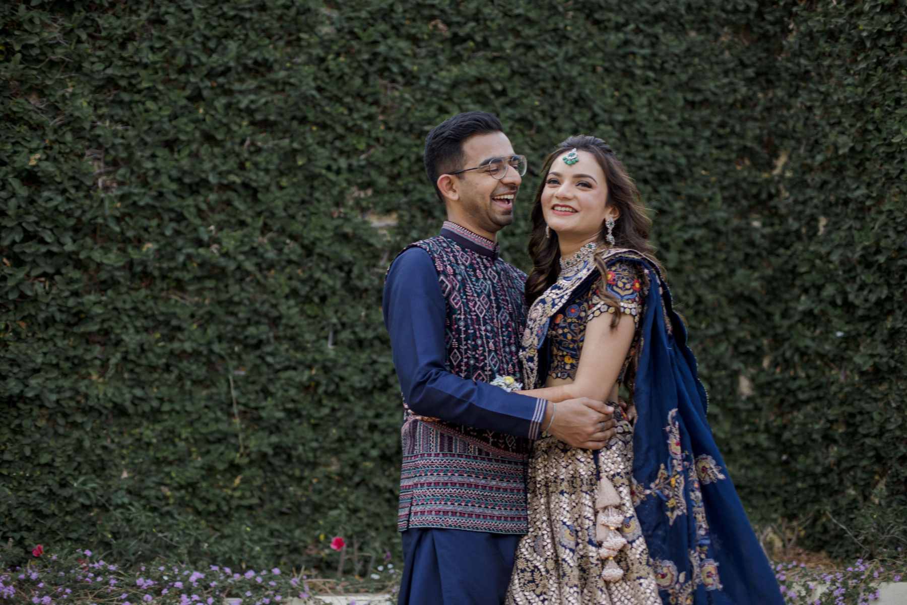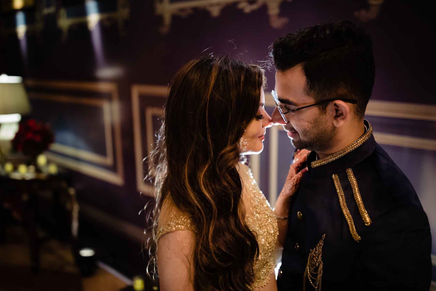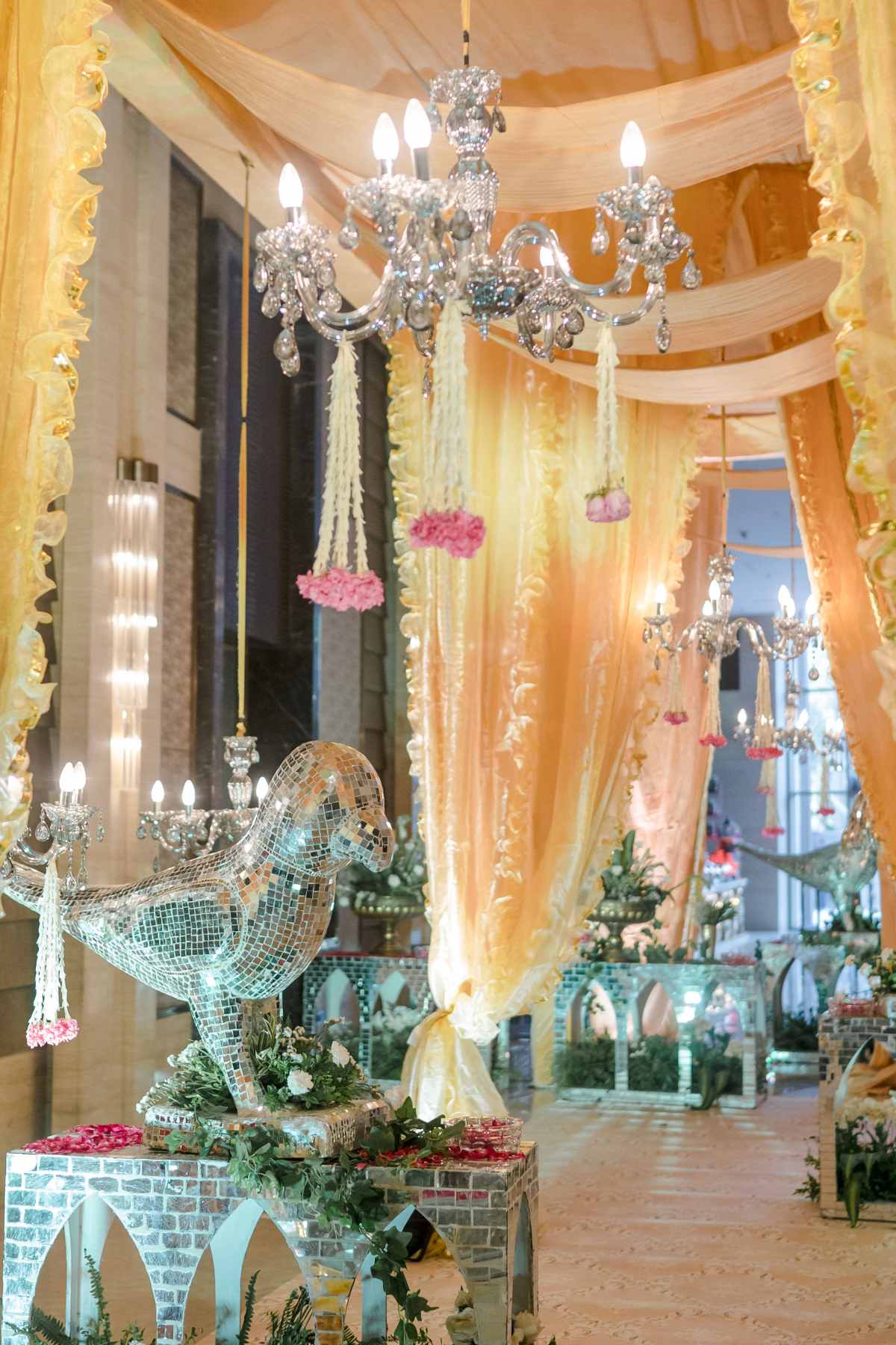 Pratham belonged to a university in Chicago & Shannel belonged to a university in New York. That's where we gathered the theme of Speakeasy, considering the prohibition bar vibe in both cities. The decor transformed everyone to a dungeon vibe and it was surreal with a smoky hidden entryway. Pratham & Shannel looked like a million bucks and the decor just complimented their personalities. There was a speakeasy bar with various types of old-world cocktails, the lounges transported you back in time, and there was a jazz lounge, cigar lounge, and a library. There was an illusionist and a saxophonist just blending with the vibe. The performances took center stage with the family, friends, and the couple dancing to Bollywood moves. The Best Kept Secret band took over with a thousand torch lights flashing and a sight to behold then followed by the best DJ in town taking over with the best percussionist and it was a party that went on till dawn.