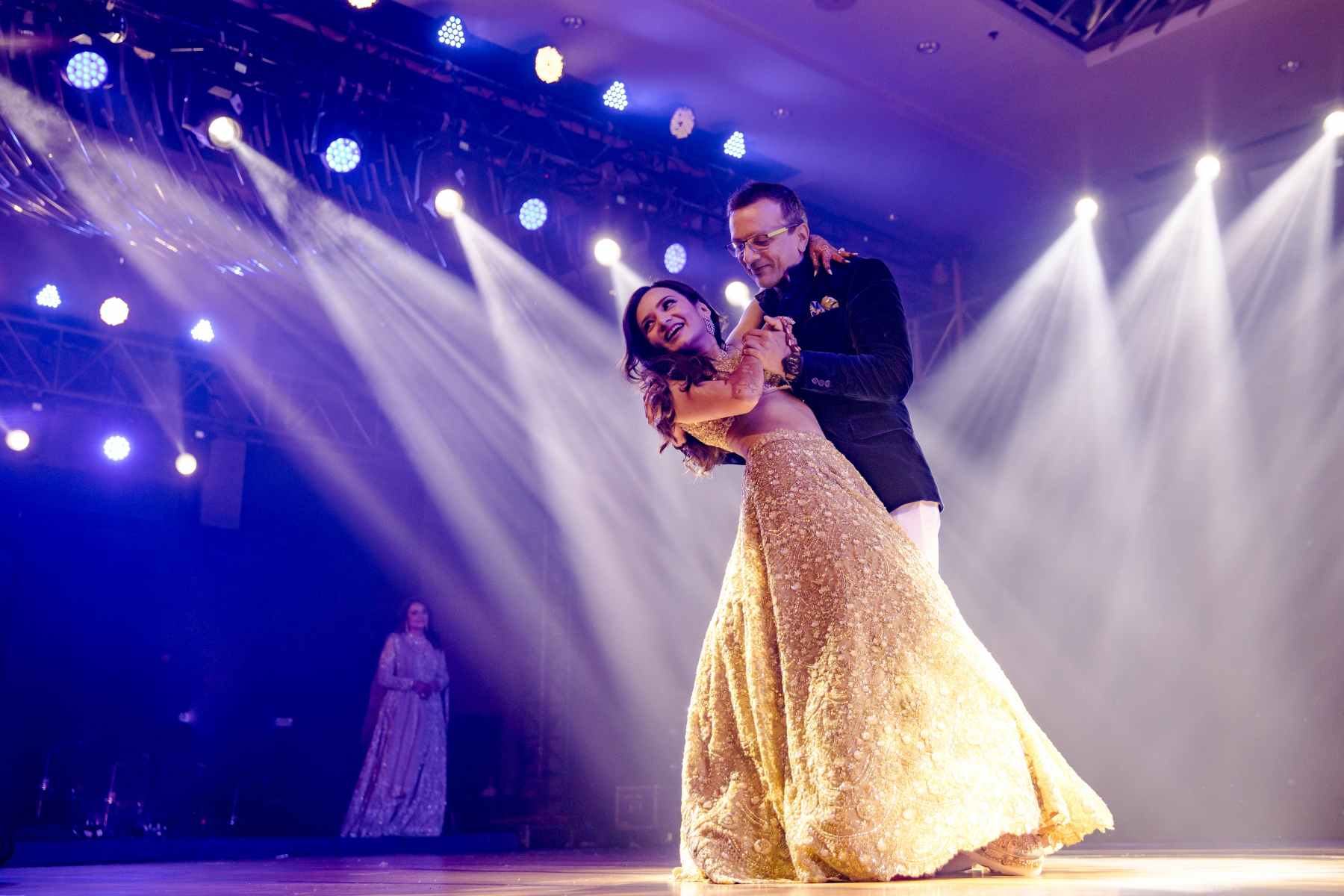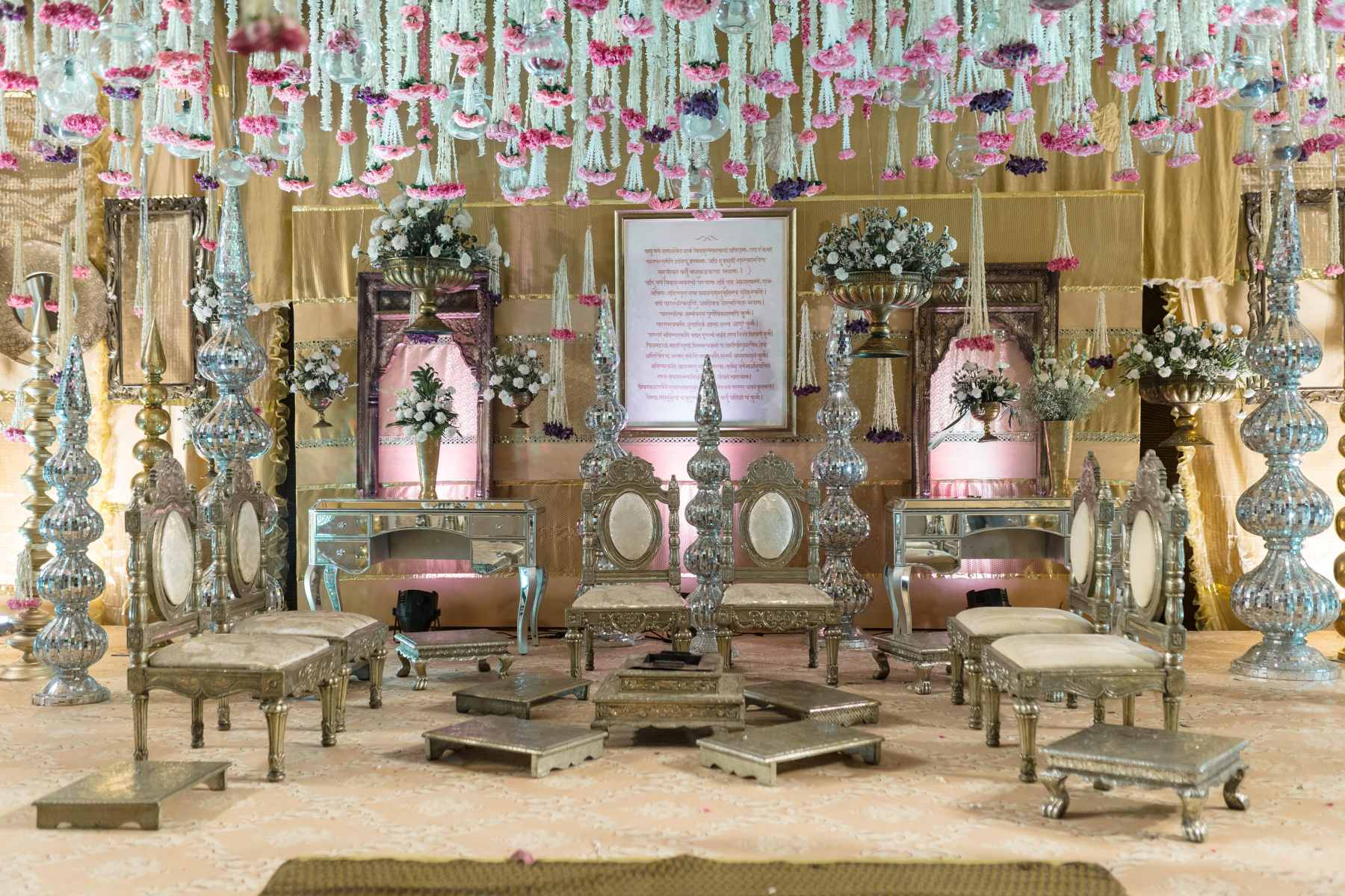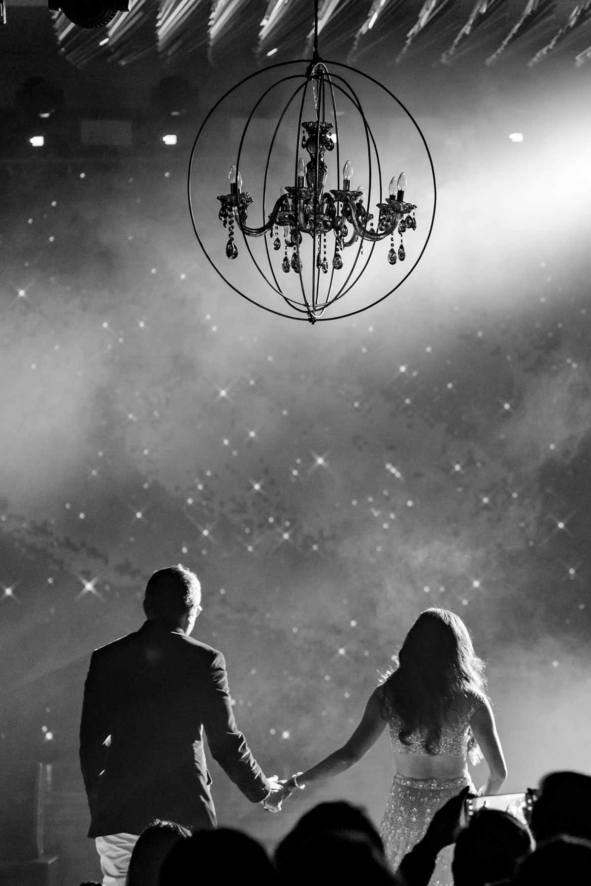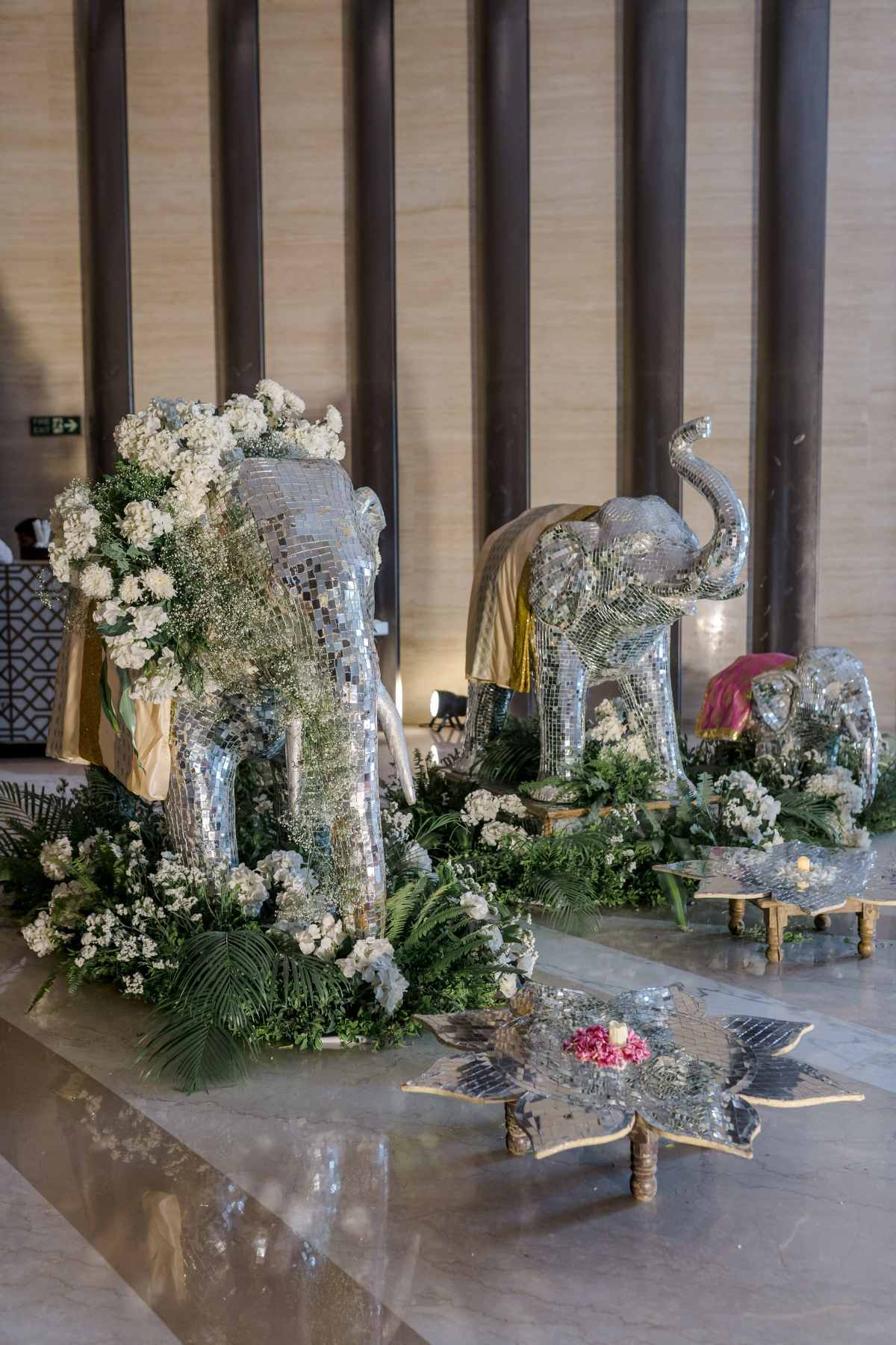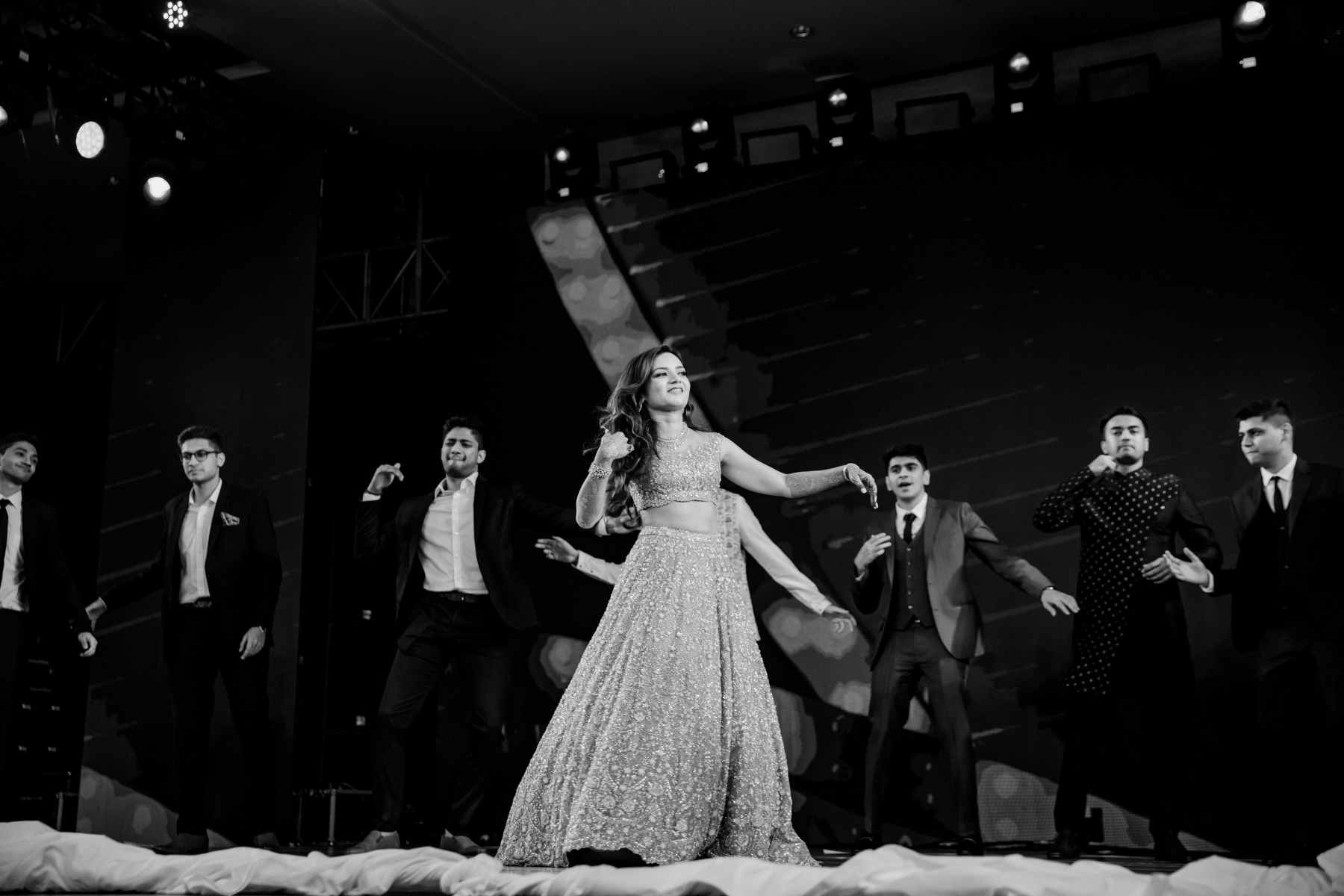 Pratham belonged to a university in Chicago & Shannel belonged to a university in New York. That's where we gathered the theme of Speakeasy, considering the prohibition bar vibe in both cities. The decor transformed everyone to a dungeon vibe and it was surreal with a smoky hidden entryway. Pratham & Shannel looked like a million bucks and the decor just complimented their personalities. There was a speakeasy bar with various types of old-world cocktails, the lounges transported you back in time, and there was a jazz lounge, cigar lounge, and a library. There was an illusionist and a saxophonist just blending with the vibe. The performances took center stage with the family, friends, and the couple dancing to Bollywood moves. The Best Kept Secret band took over with a thousand torch lights flashing and a sight to behold then followed by the best DJ in town taking over with the best percussionist and it was a party that went on till dawn.