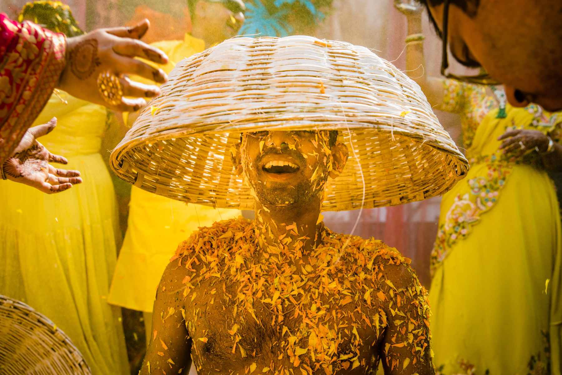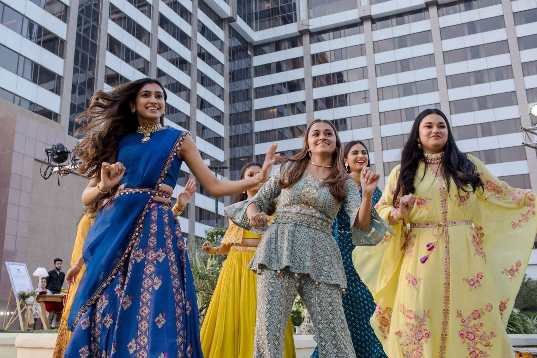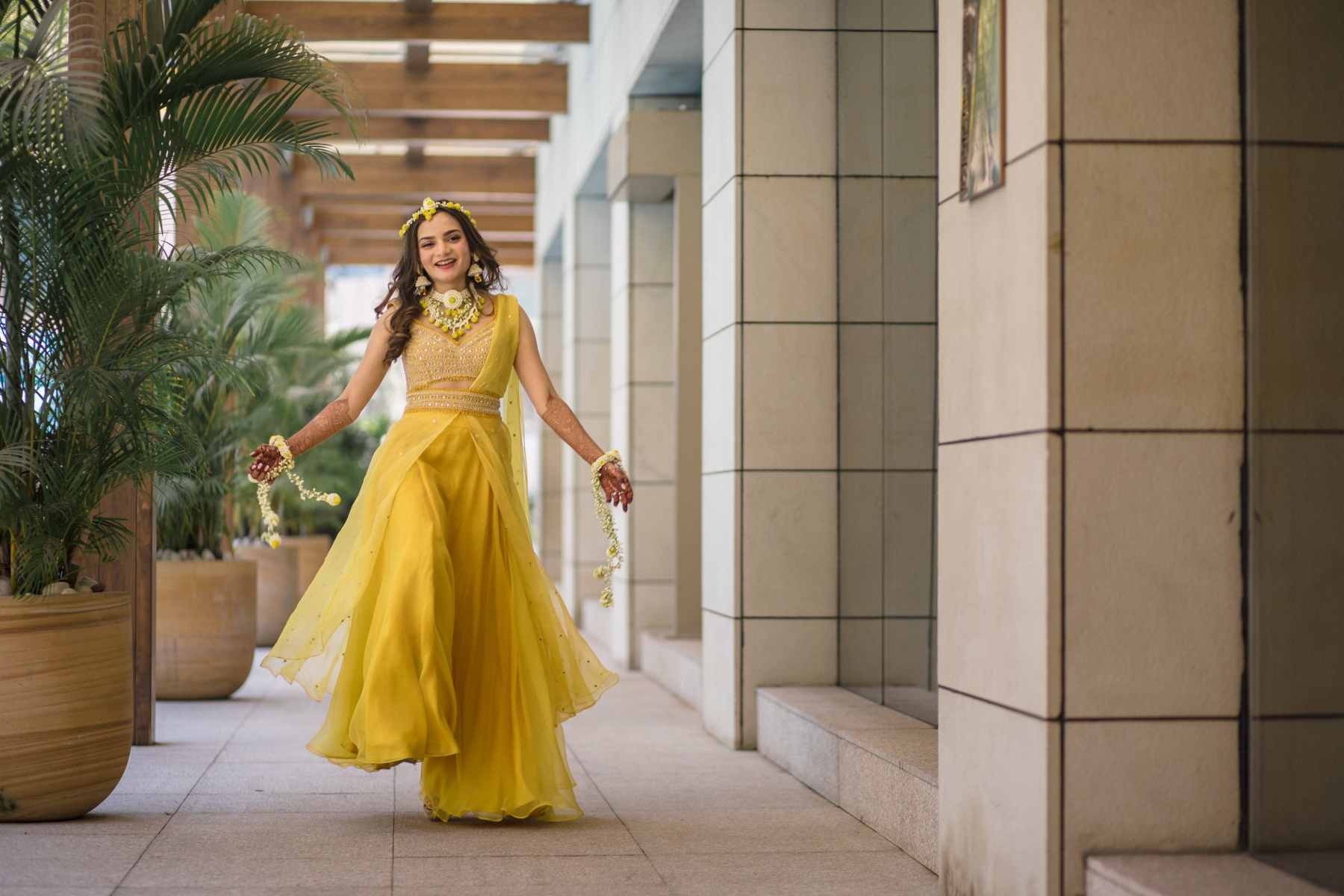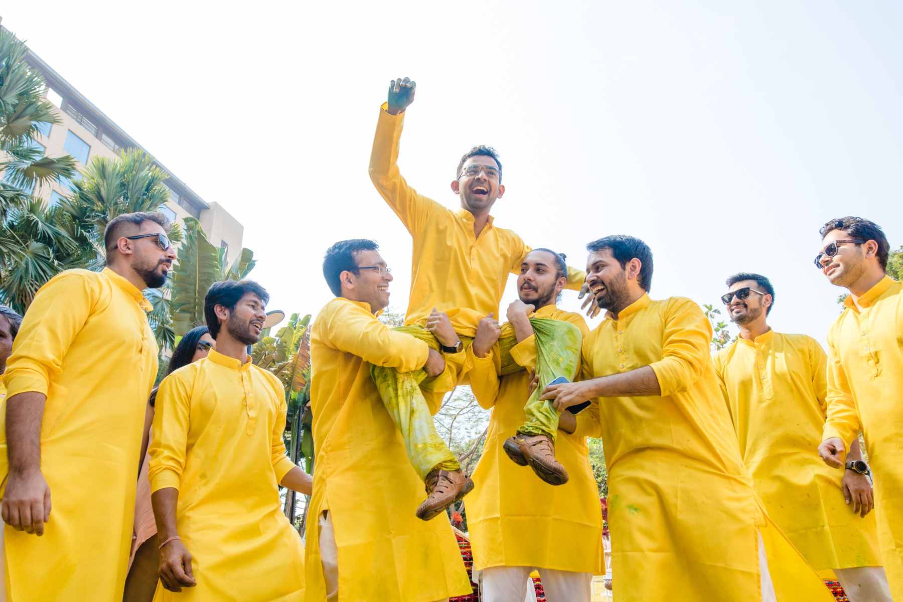 The Haldi was a vibe, vibrant and full of bright colors. The couple entered in a hand cart filled with flowers and the family held coloured bombs that filled the sky with hues of love. The Friends enacted a surprise for the couple and showered the couple with flowers and colors. DJ Perch got everyone to groove to her tunes and the guests enjoyed all the fun activities like Beer Pong, Dart Ball, Burst a Balloon, Mini Toasties, Jenga, Bachpan ki Yaadein, and many more. The guests twirled to a 360-degree camera and although it was sunny the guests had a fabulous start to the Two-day wedding festivities.