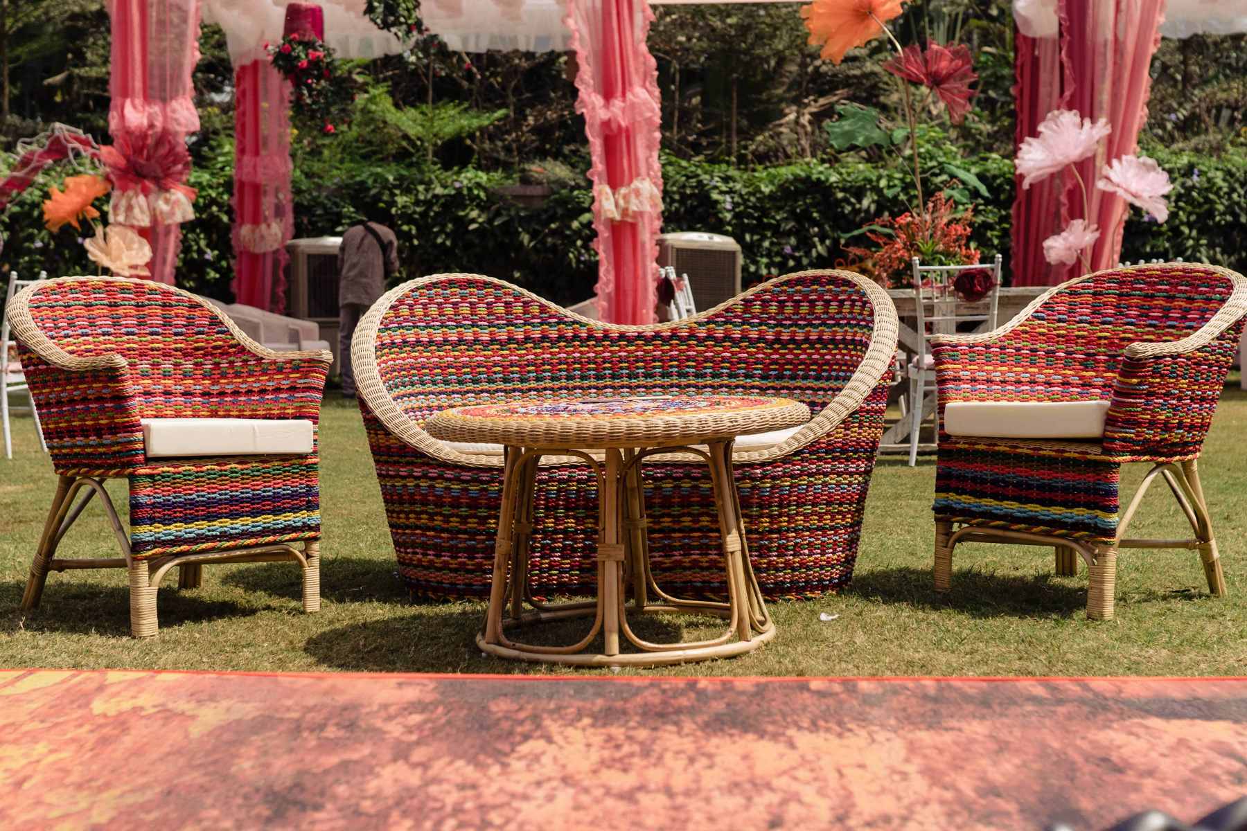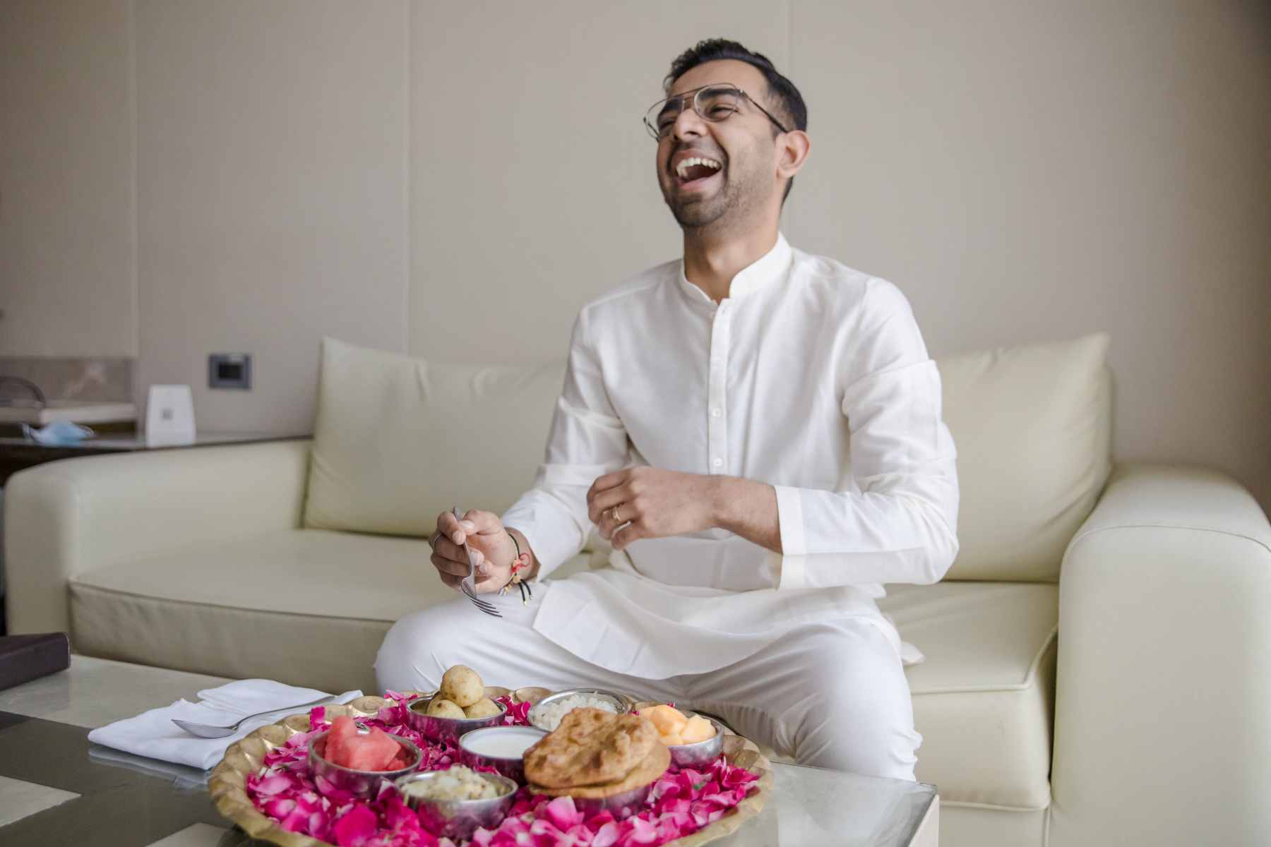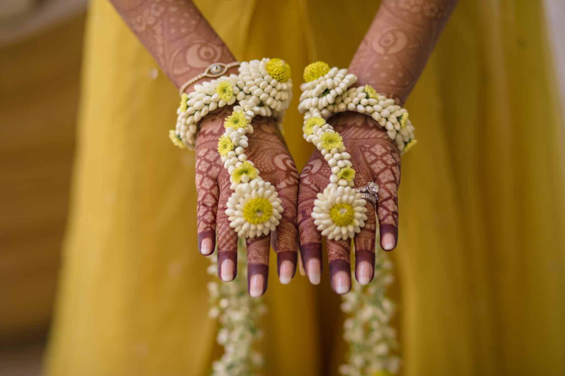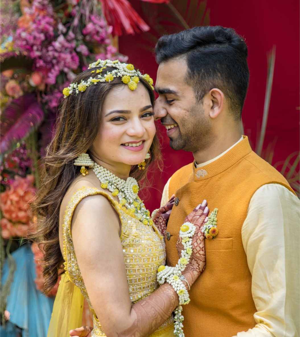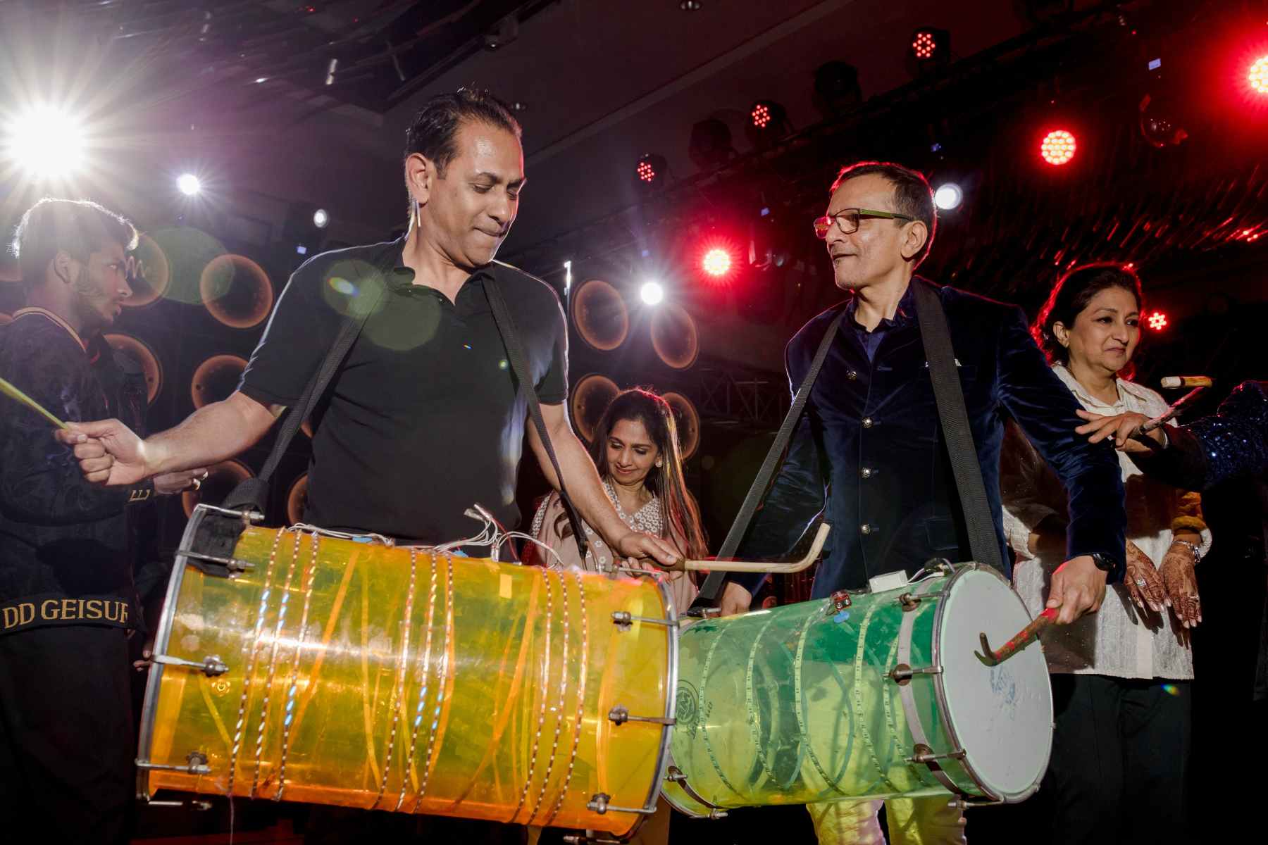 The Haldi was a vibe, vibrant and full of bright colors. The couple entered in a hand cart filled with flowers and the family held coloured bombs that filled the sky with hues of love. The Friends enacted a surprise for the couple and showered the couple with flowers and colors. DJ Perch got everyone to groove to her tunes and the guests enjoyed all the fun activities like Beer Pong, Dart Ball, Burst a Balloon, Mini Toasties, Jenga, Bachpan ki Yaadein, and many more. The guests twirled to a 360-degree camera and although it was sunny the guests had a fabulous start to the Two-day wedding festivities.