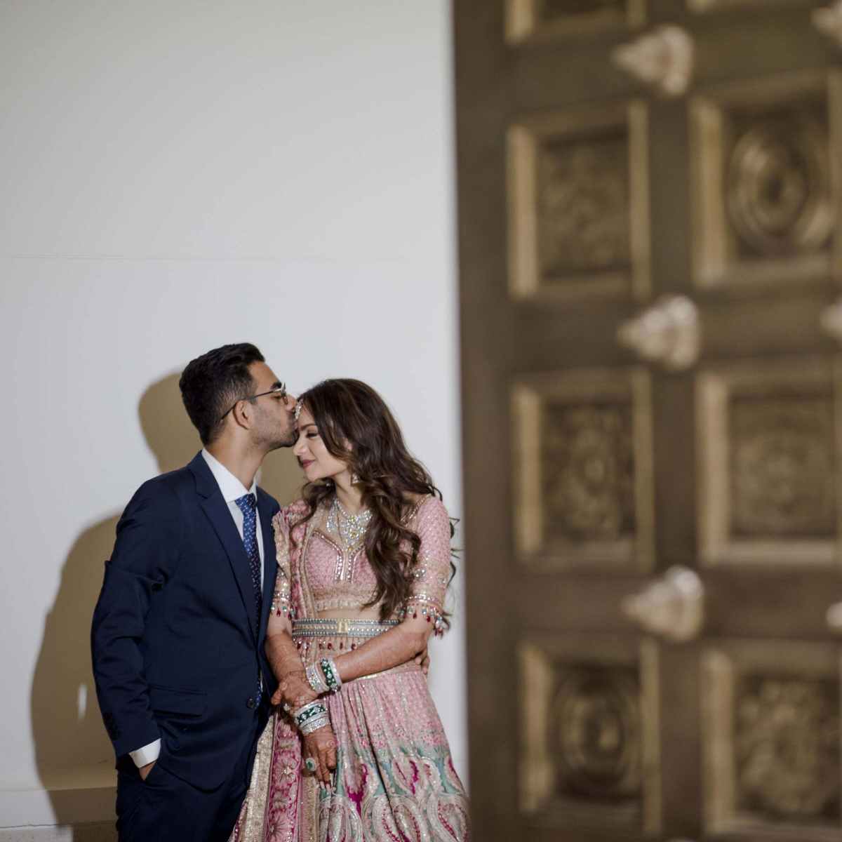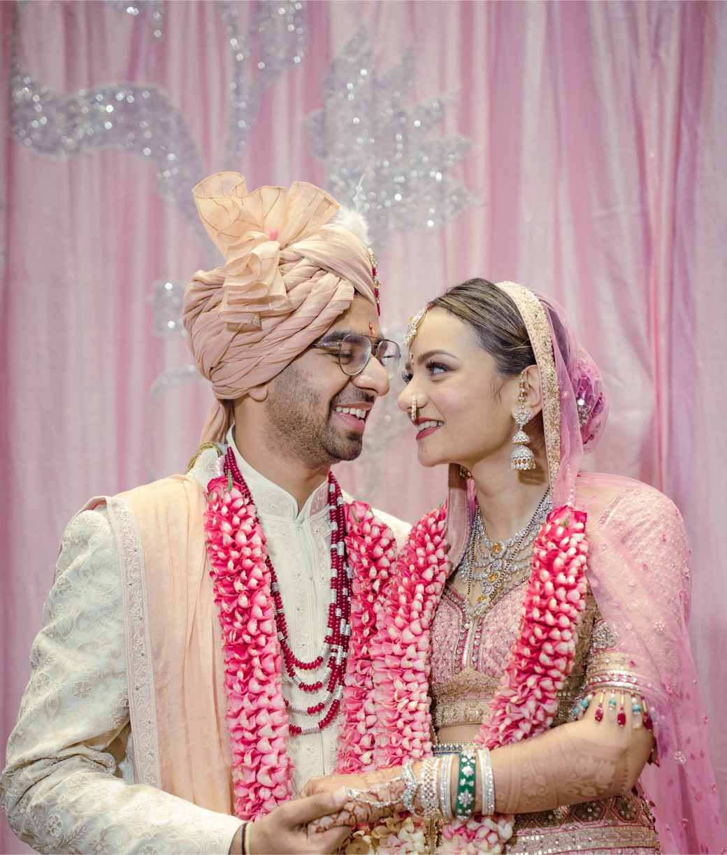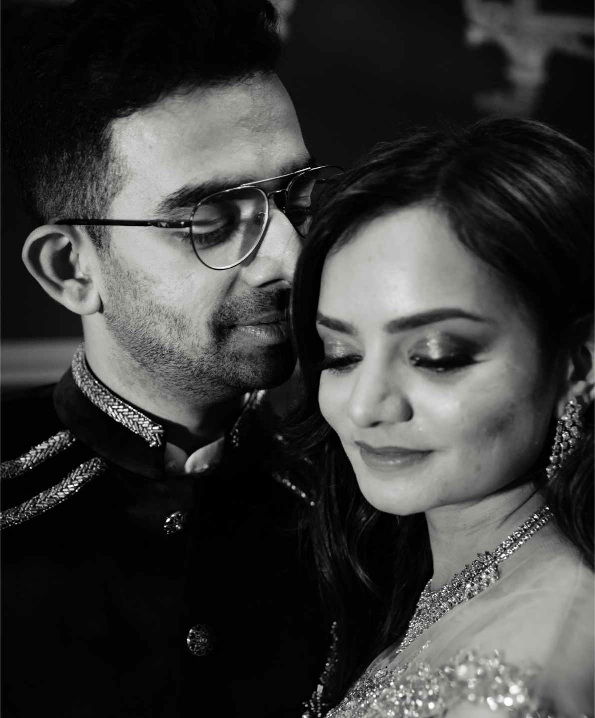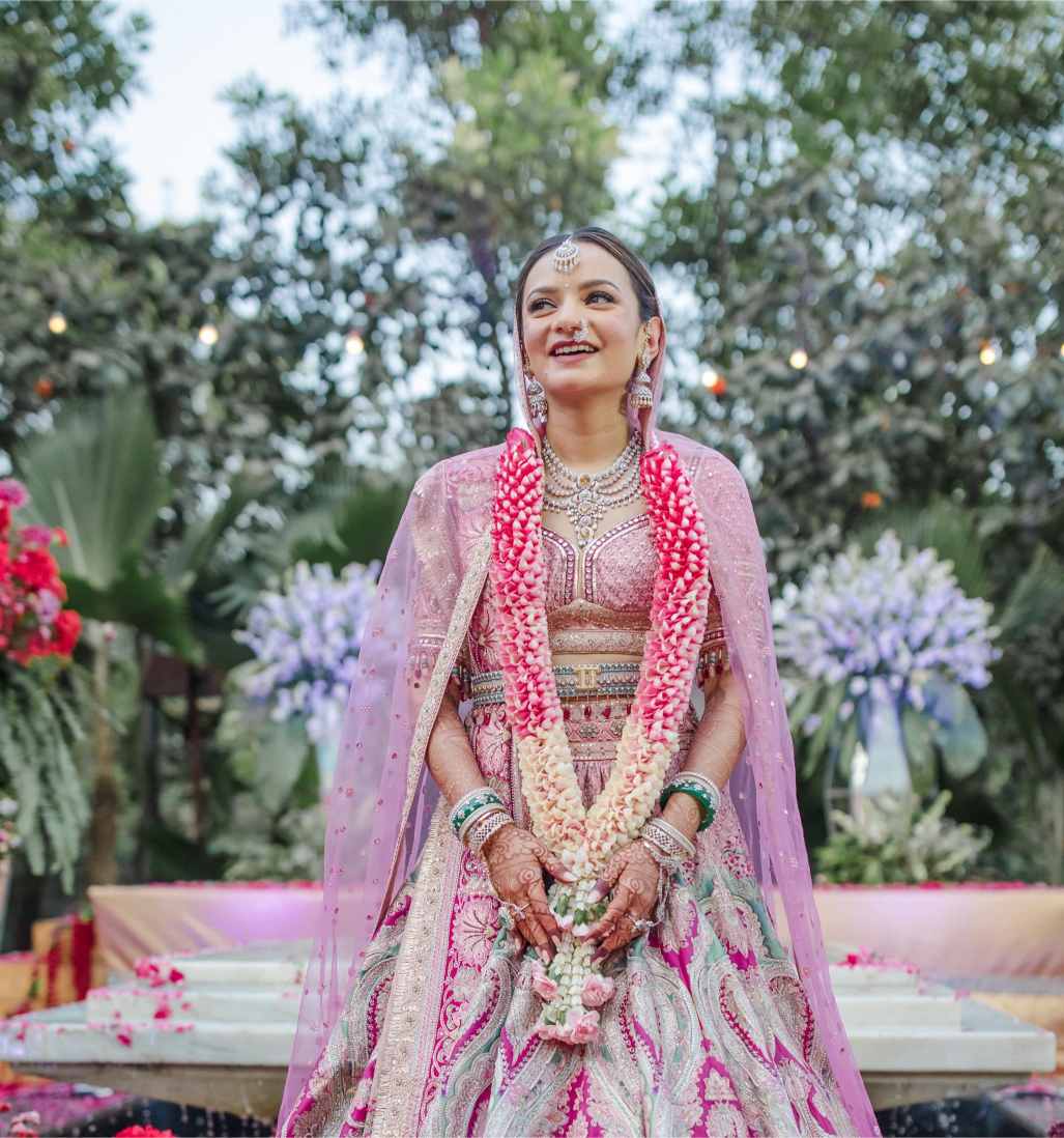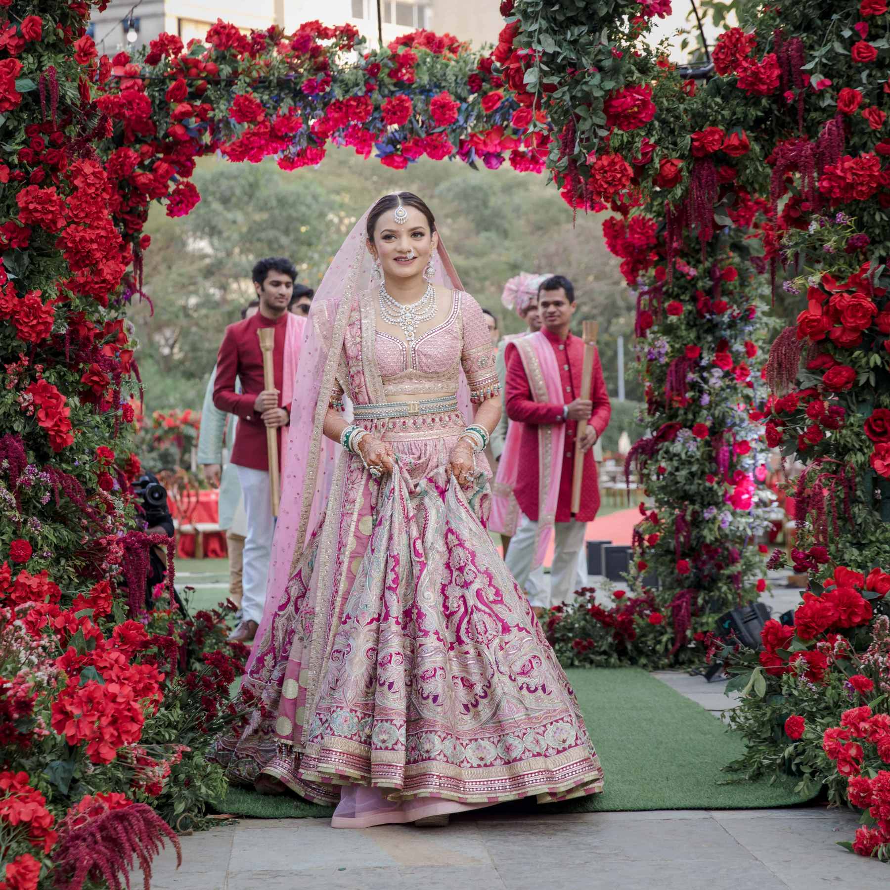 Pratham entered to small welcome ceremony by the mother-in-law. Followed by the beautiful bride walking into a custom Pre recorded track by Pratham which was a surprise for her. She was so moved by his gesture. The ceremony began with Ameya Dabli creating a blissful ambience and Shannel entered with her grandparents and was escorted to the mandap by her dad. With a gleam in her eye, we saw magic unfold with custom vows in a hand-calligraphed frame. The families showered them with rose petals and they both were husband & wife.