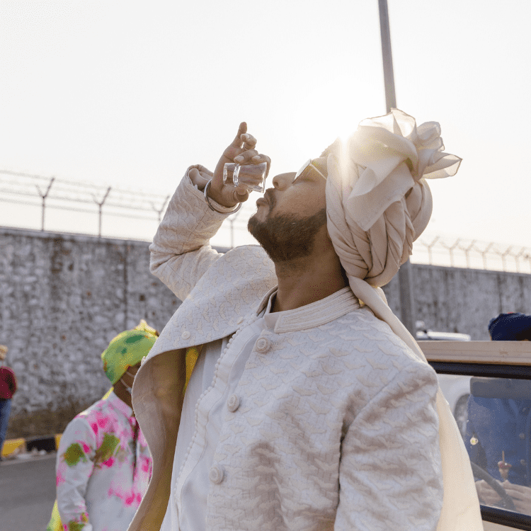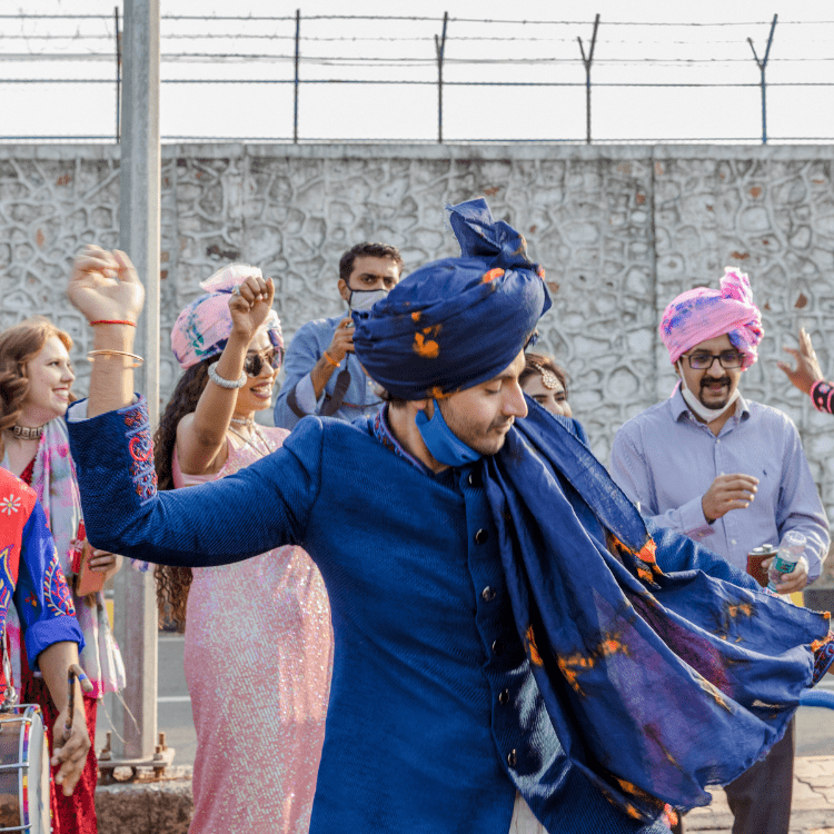 The Baraat started on a high note with the DJ grooving to the tunes of the groom, it was a Rager Baraat with the Baraati's in tye & dye safaas and customised logo flasks with alcohol premixes. It was truly an ode to the Batman Groom and his baraati's.