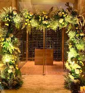 The Boho-themed mehendi was a colorful affair. The bride had created a love story Lehenga for herself that depicted the entire storyline of her proposal and courtship. The couple captured beautiful portraits in the sunlit courtyard. The groom entered to Dhol beats with his family and while the bride walked hand in hand with her parents. The afternoon kicked off with a face-off to dhol beats. The family kicked off the mehendi celebrations and were then taken over by the floral adornment ceremony followed by a dhol-themed cake cutting. DJ Maddock with Dhol walas took over to make sure that the crowd swooned to his Bollywood Beats.