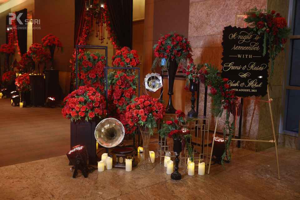 Guns & Roses was the theme for the night, a night that was dressed in black and red. A cocktail where the couple took center stage and everything was royal and red. The signage at the entry read we’ve waited for a year so party accordingly. The evening kicked off with the couple entering to a " Sky Full of Stars " and breaking into a dance then followed by performances of the entire family followed by the friends. Yash went down on his knees to put a ring on Mehak and we raised a toast to the beautiful couple. DJ Aman Nagpal took over the night with his Dhol team. What a night it was going into the wee hours of the morning with the bar being the highlight.