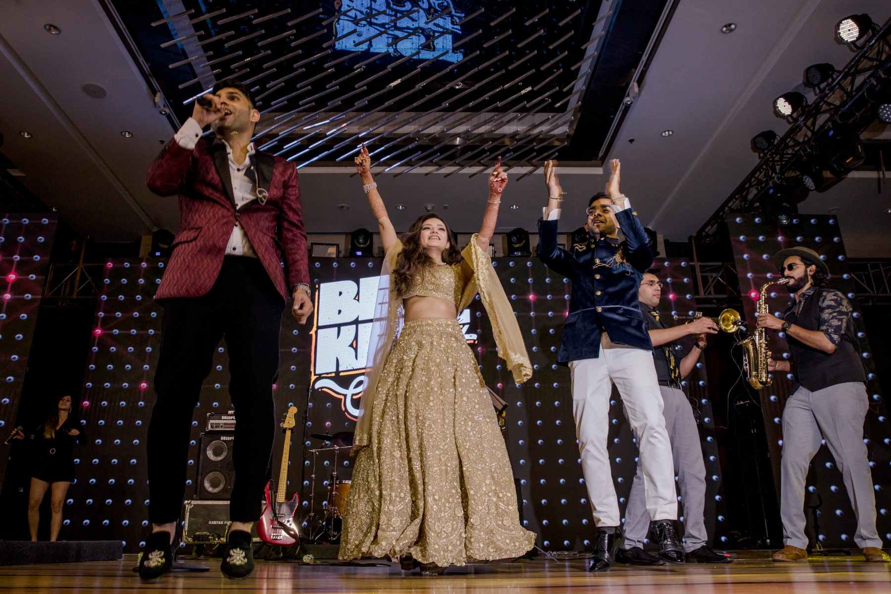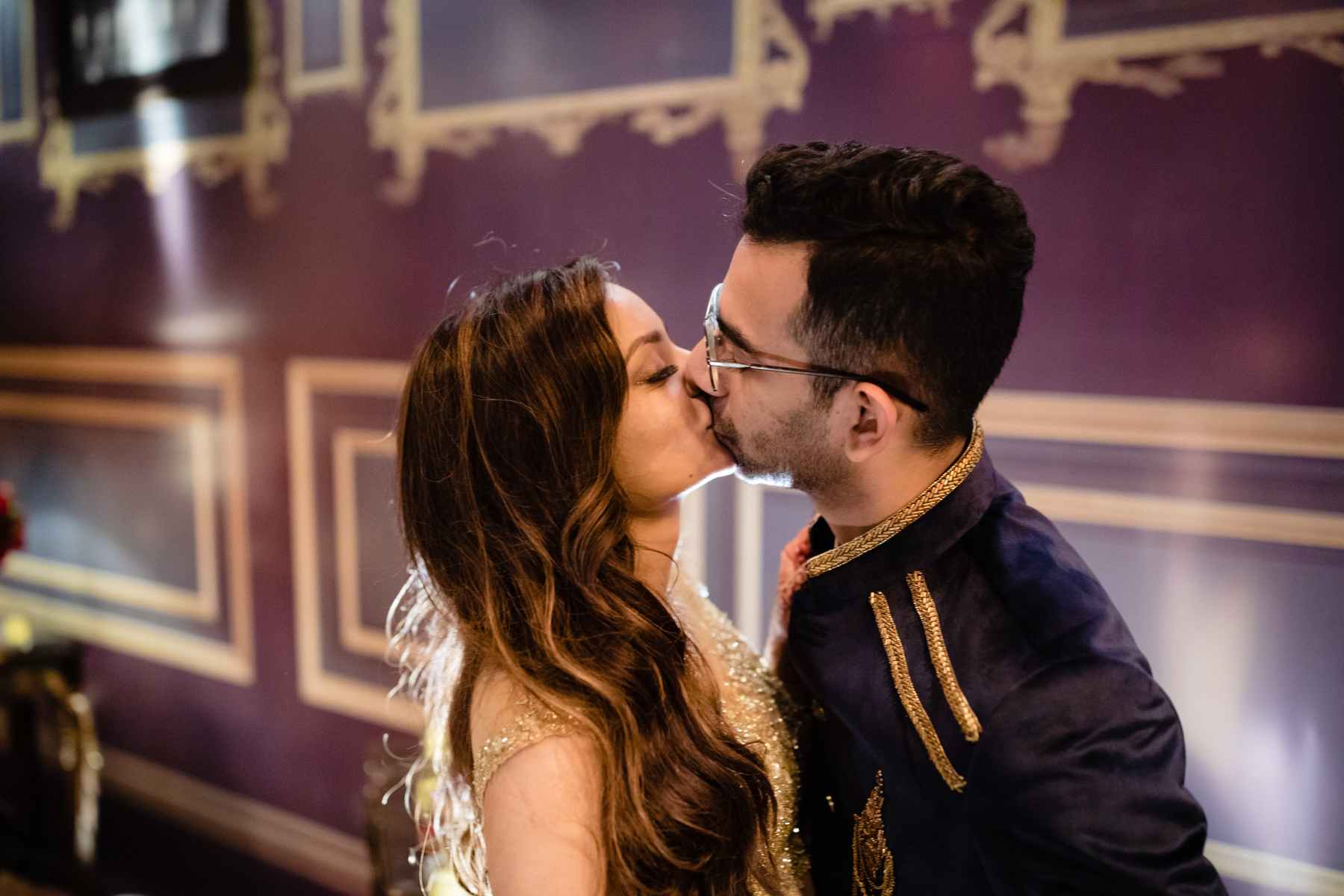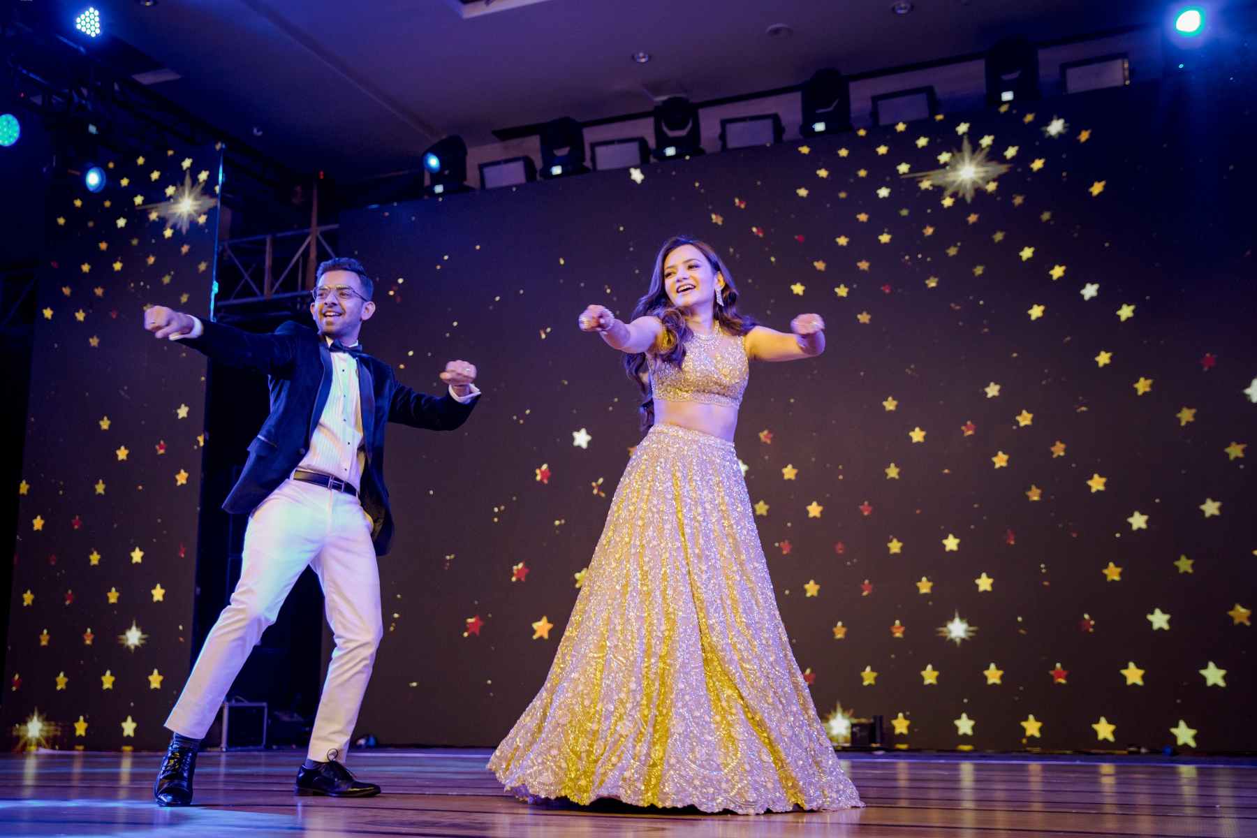 Pratham belonged to a university in Chicago & Shannel belonged to a university in New York. That's where we gathered the theme of Speakeasy, considering the prohibition bar vibe in both cities. The decor transformed everyone to a dungeon vibe and it was surreal with a smoky hidden entryway. Pratham & Shannel looked like a million bucks and the decor just complimented their personalities. There was a speakeasy bar with various types of old-world cocktails, the lounges transported you back in time, and there was a jazz lounge, cigar lounge, and a library. There was an illusionist and a saxophonist just blending with the vibe. The performances took center stage with the family, friends, and the couple dancing to Bollywood moves. The Best Kept Secret band took over with a thousand torch lights flashing and a sight to behold then followed by the best DJ in town taking over with the best percussionist and it was a party that went on till dawn.