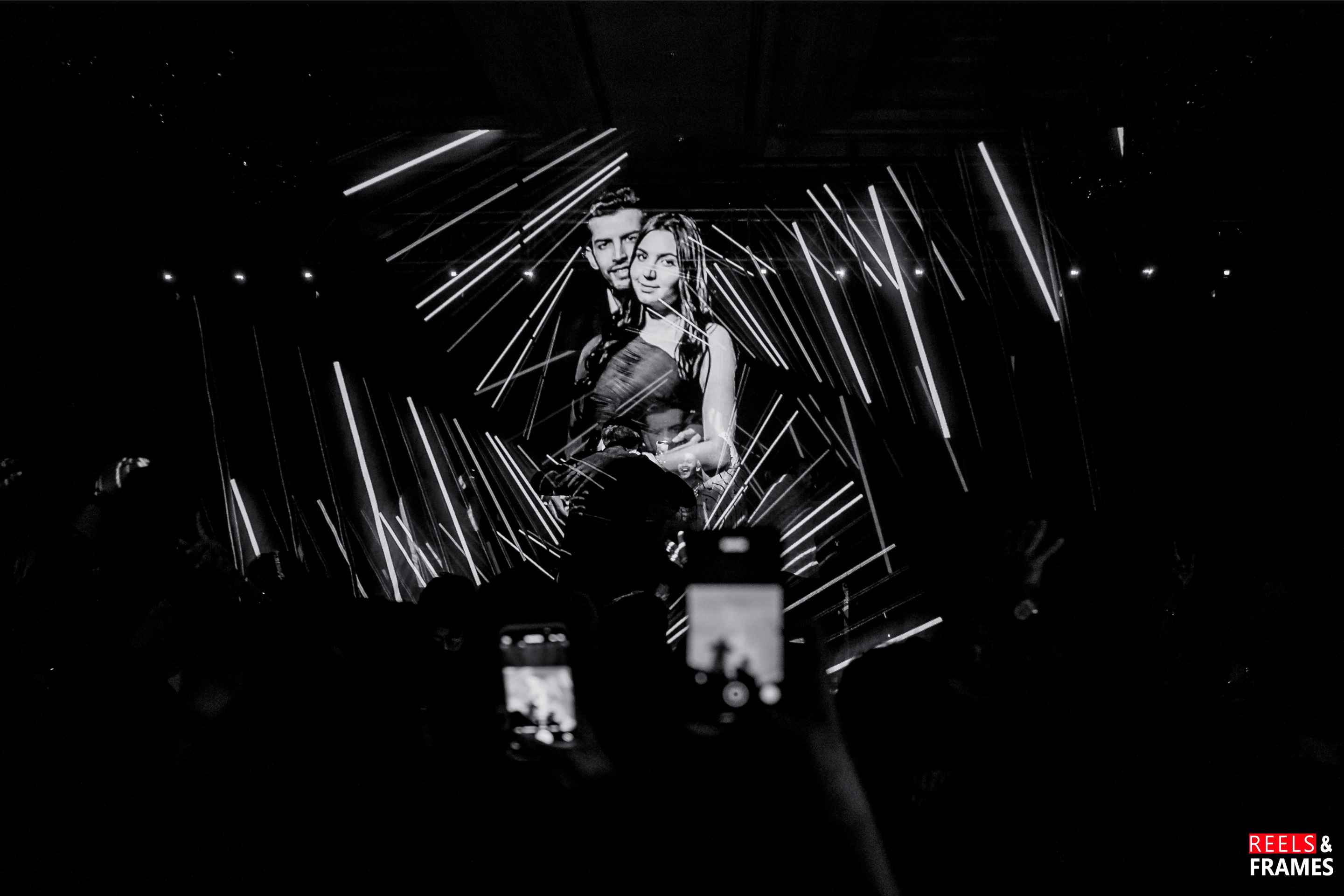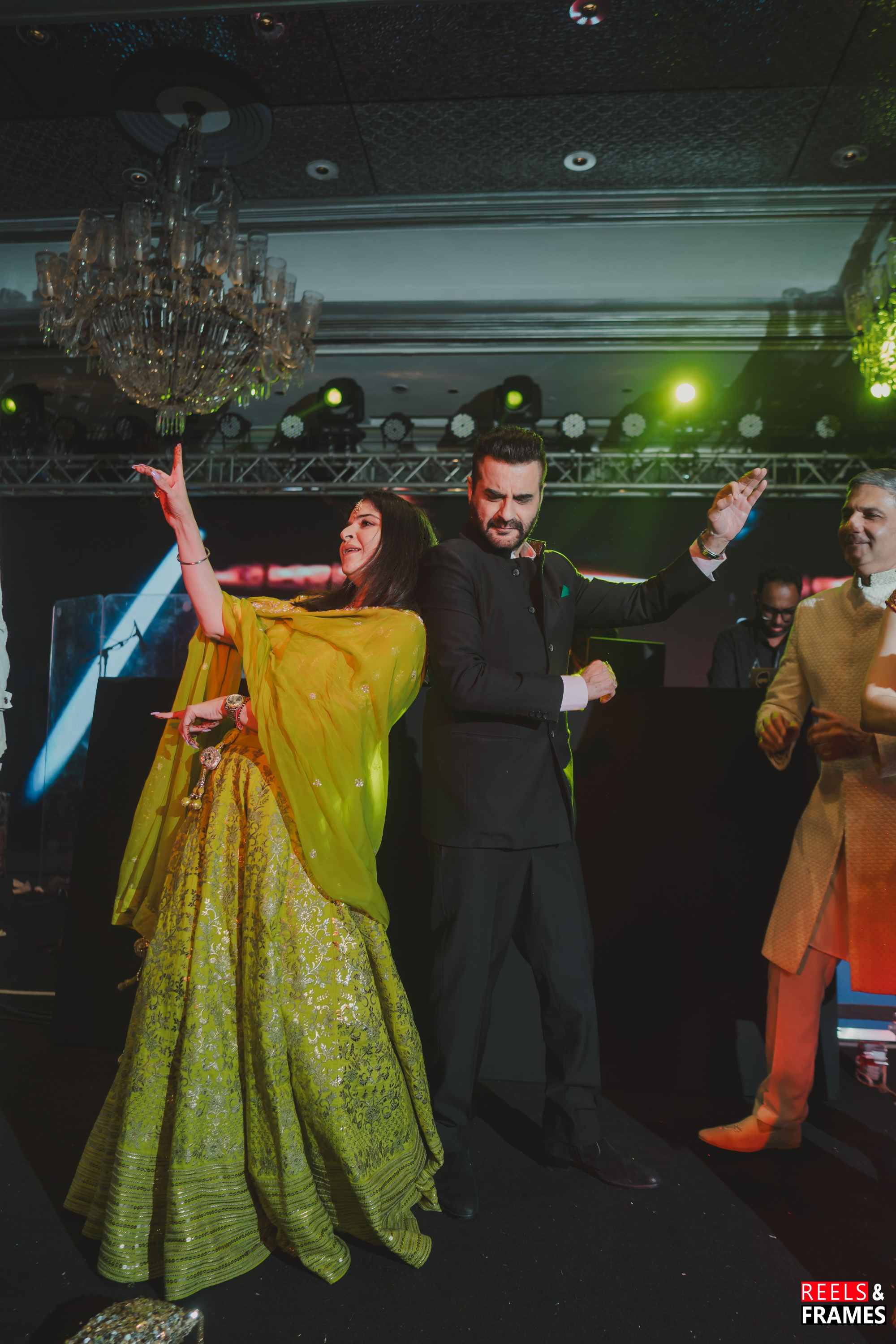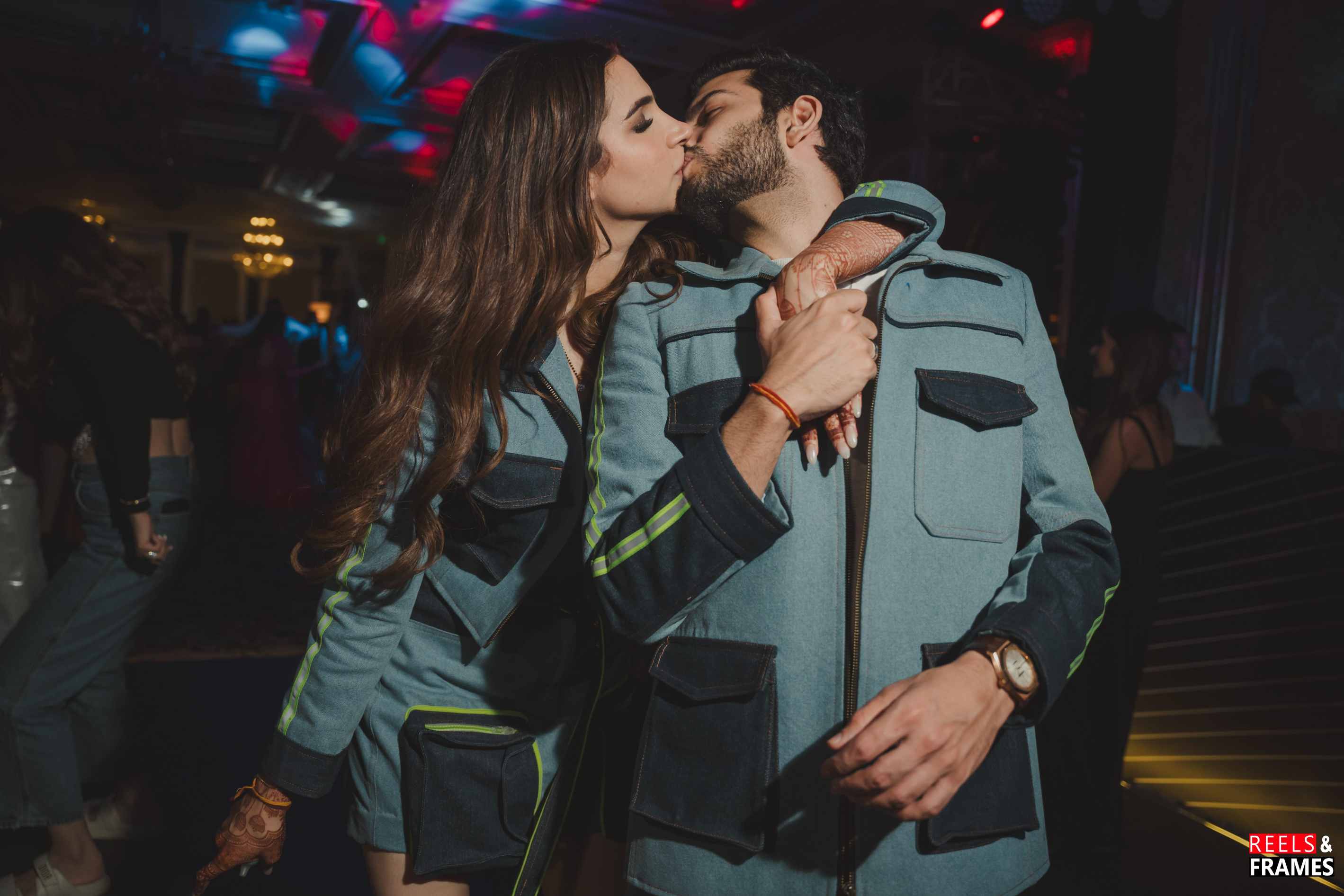 The Space looked bespoke and royale straight from the 80’s, disco balls & neon lights filled the space with its radiance. Both the bride and groom twinned in bespoke Manish Malhotra outfits and sparkled. They entered a shadow being formed in a silhouette to "Fall in Love " going into " Voulez Vous ". Rishi went down on his knees and put a ring on Vedika followed by the cake cutting. Then started the family & friends shaking a leg. The highlight of the dances was a dance by the bride and her cousin. The evening was taken over by the best anchor Junaid followed by the RDB Boys band Manj Musik, the entire crowd grooved to his Punjabi & Hip-Hop tunes while everyone enjoyed the curated classic cocktails from the 80s. Then came in the best DJ in town DJ AJ to get everyone to groove to his retro disco hits and Bollywood numbers. The highlight was the mesh drop which was insane, projections mapped on a mesh net in the middle of the ballroom created the drama and oomph to make sure everyone partied till dawn. A party like no other.